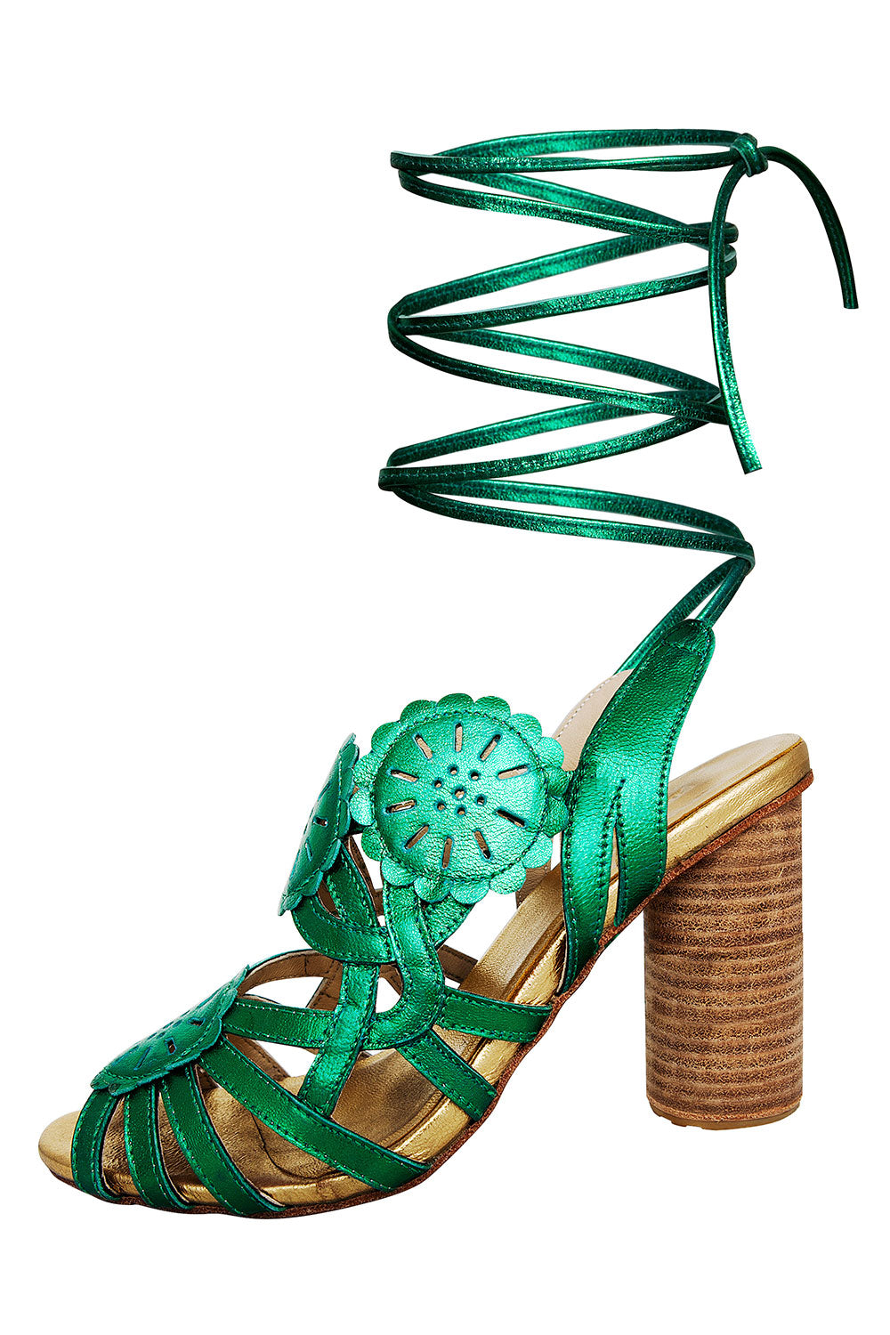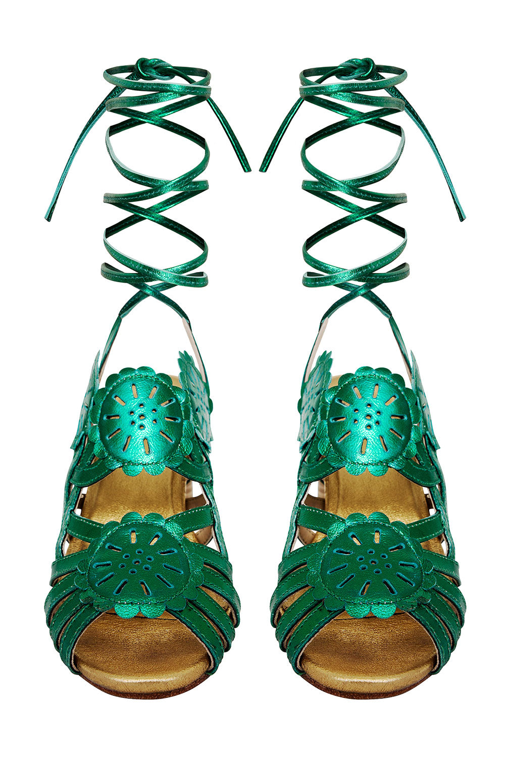 FLOWER SCALLOP STRAPPY HEELS GREEN METALLIC