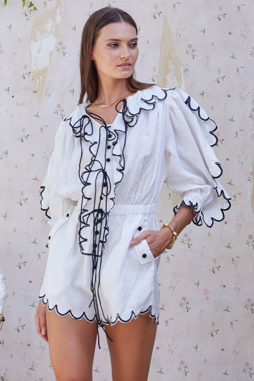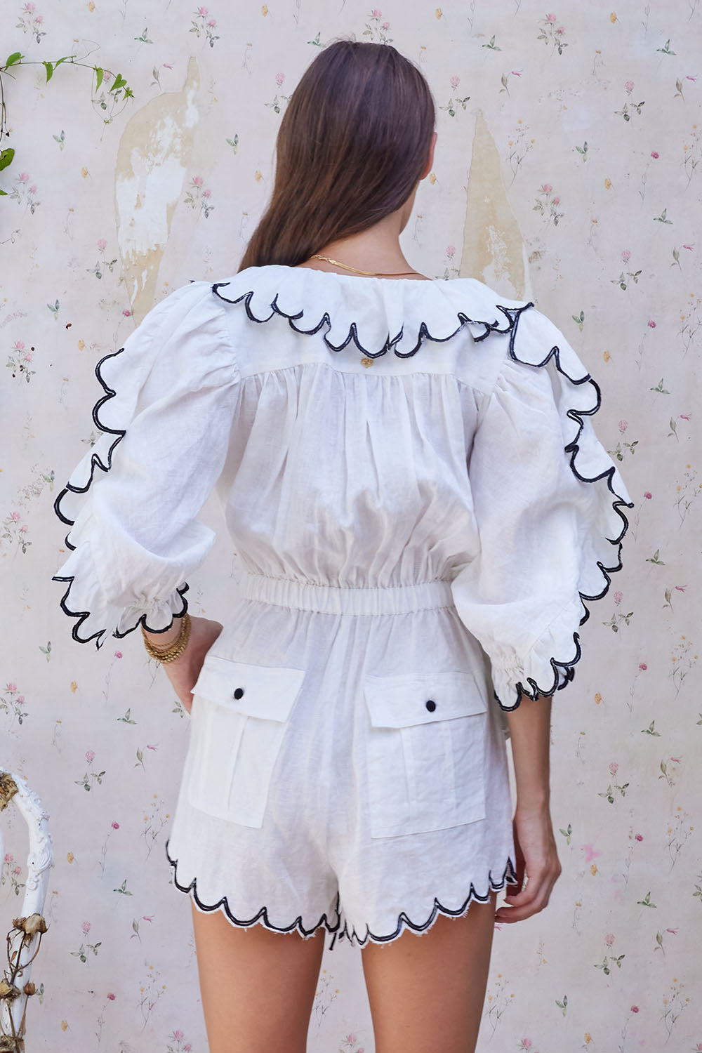 AJAX SCALLOP SHORT PLAYSUIT EMBROIDERY WHITE