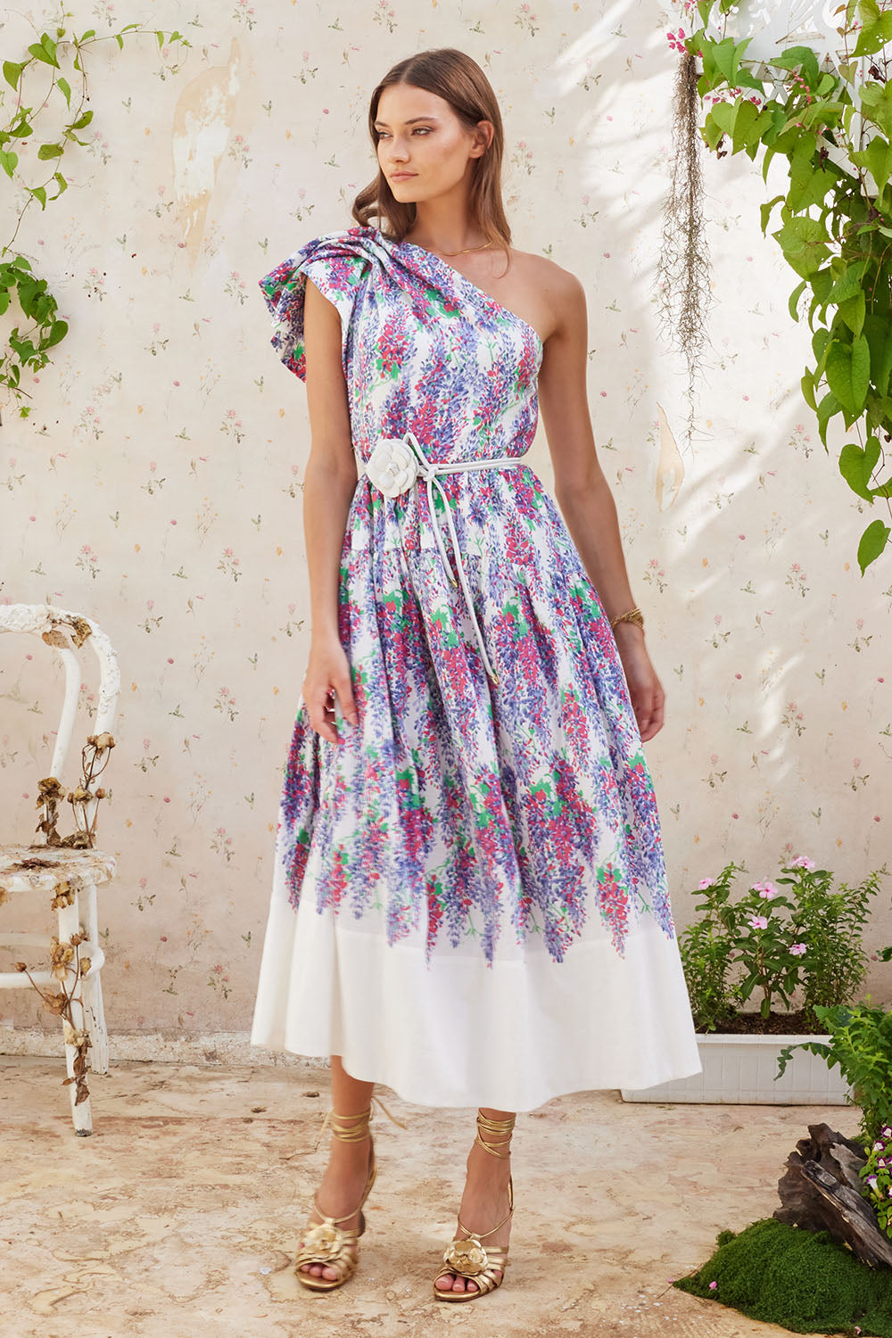 AMANI OFF SHOULDERS MIDI DRESS ENGLISH GARDEN
