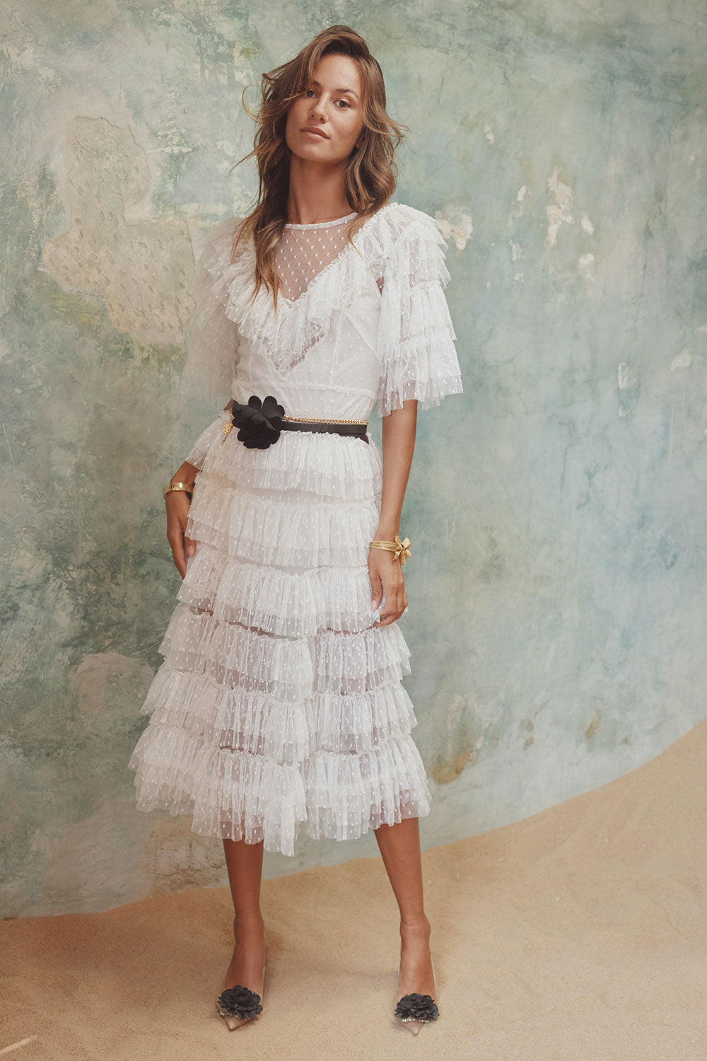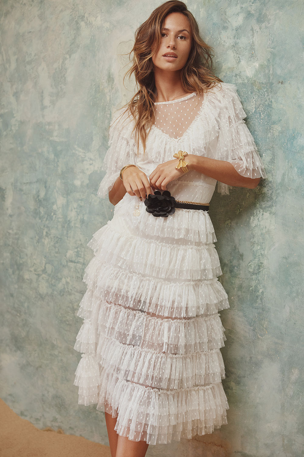 Tiered ruffle tulle midi dress, comes with an additional slip dress