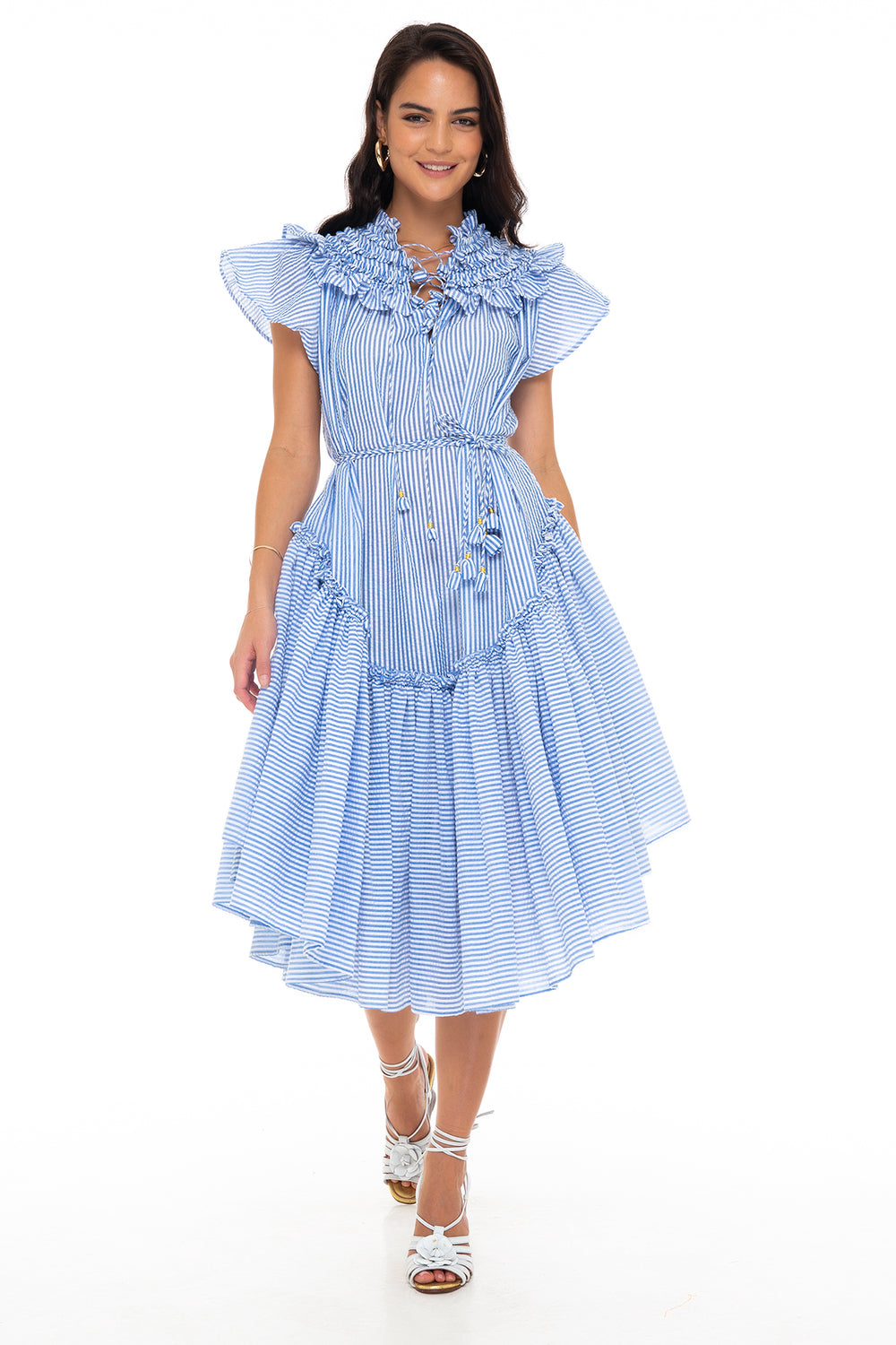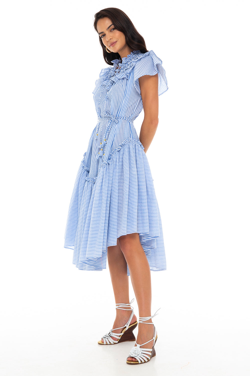 BRIGITTE MIDI DRESS SEERSUCKER BLUE SKY