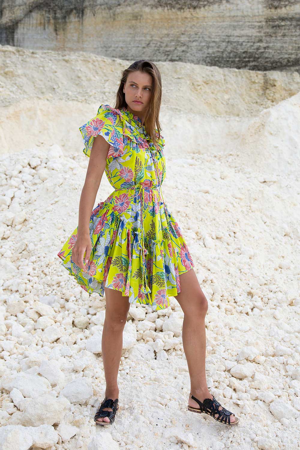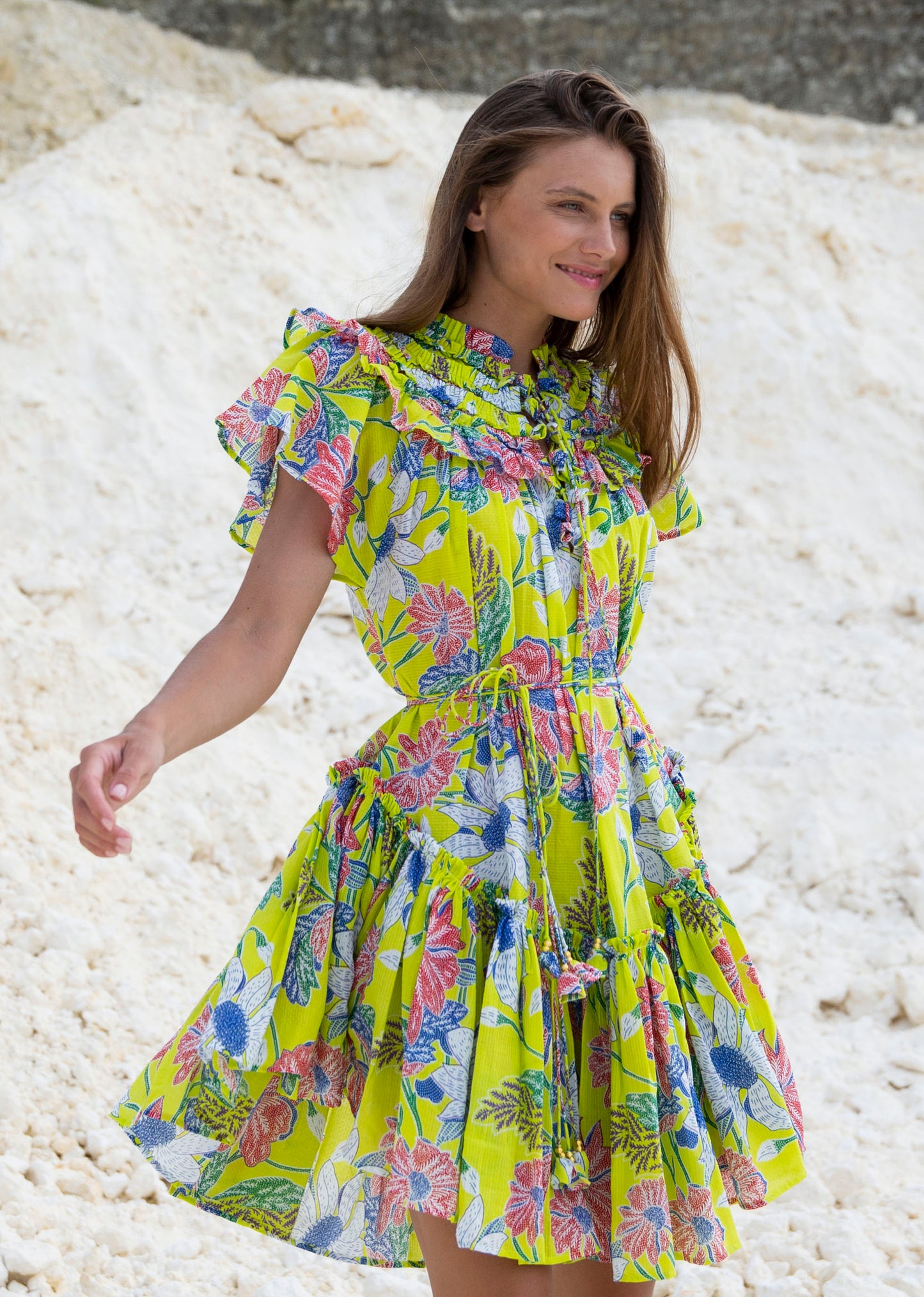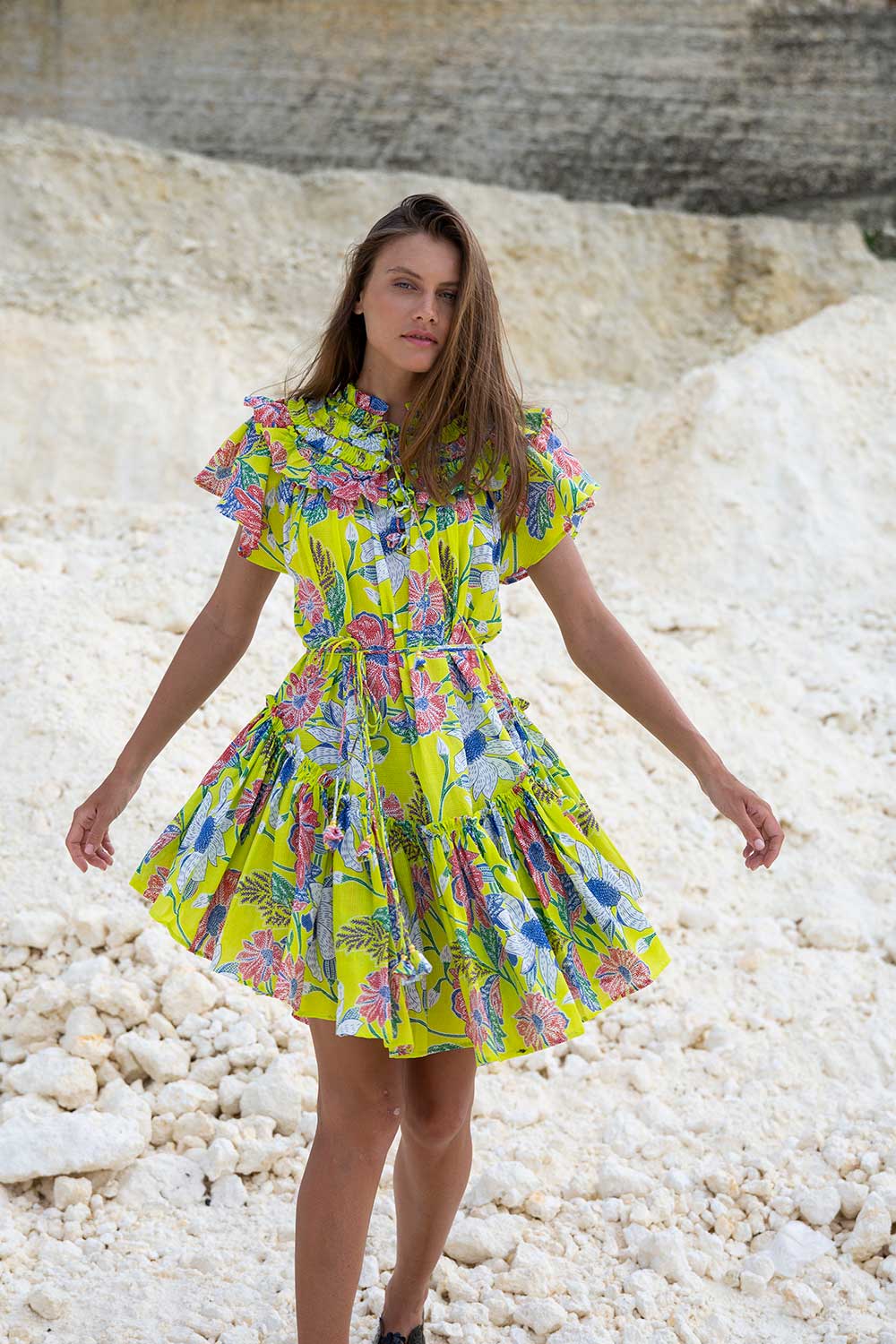 BRIGITTE MINI DRESS WILD FLOWER LEMON LIME