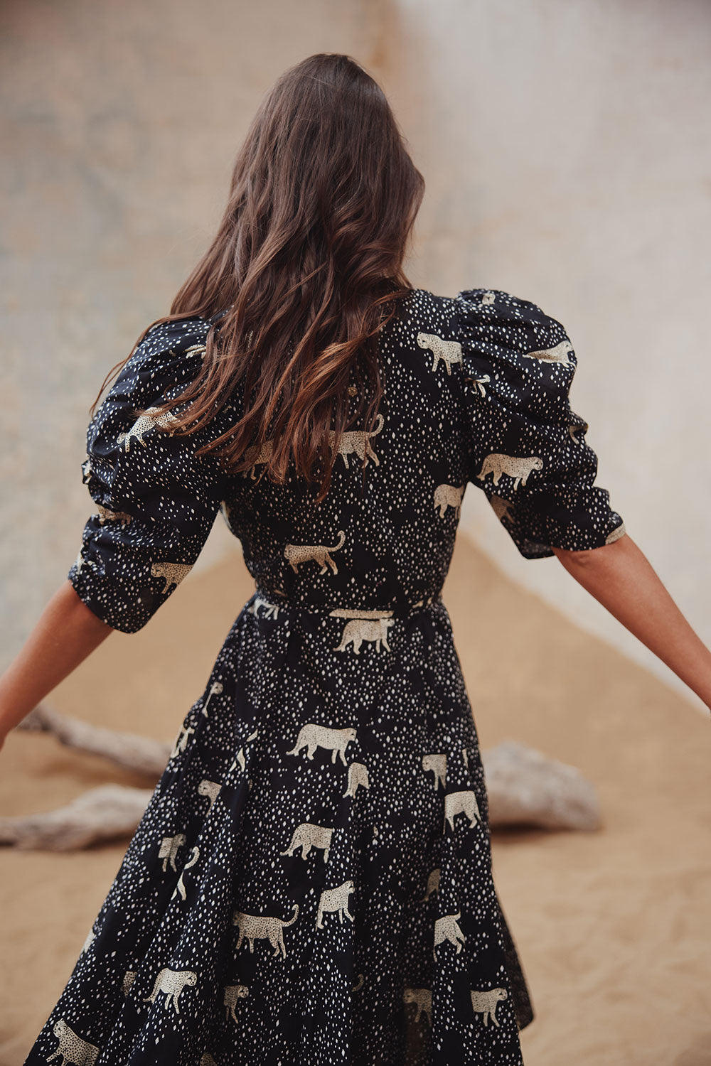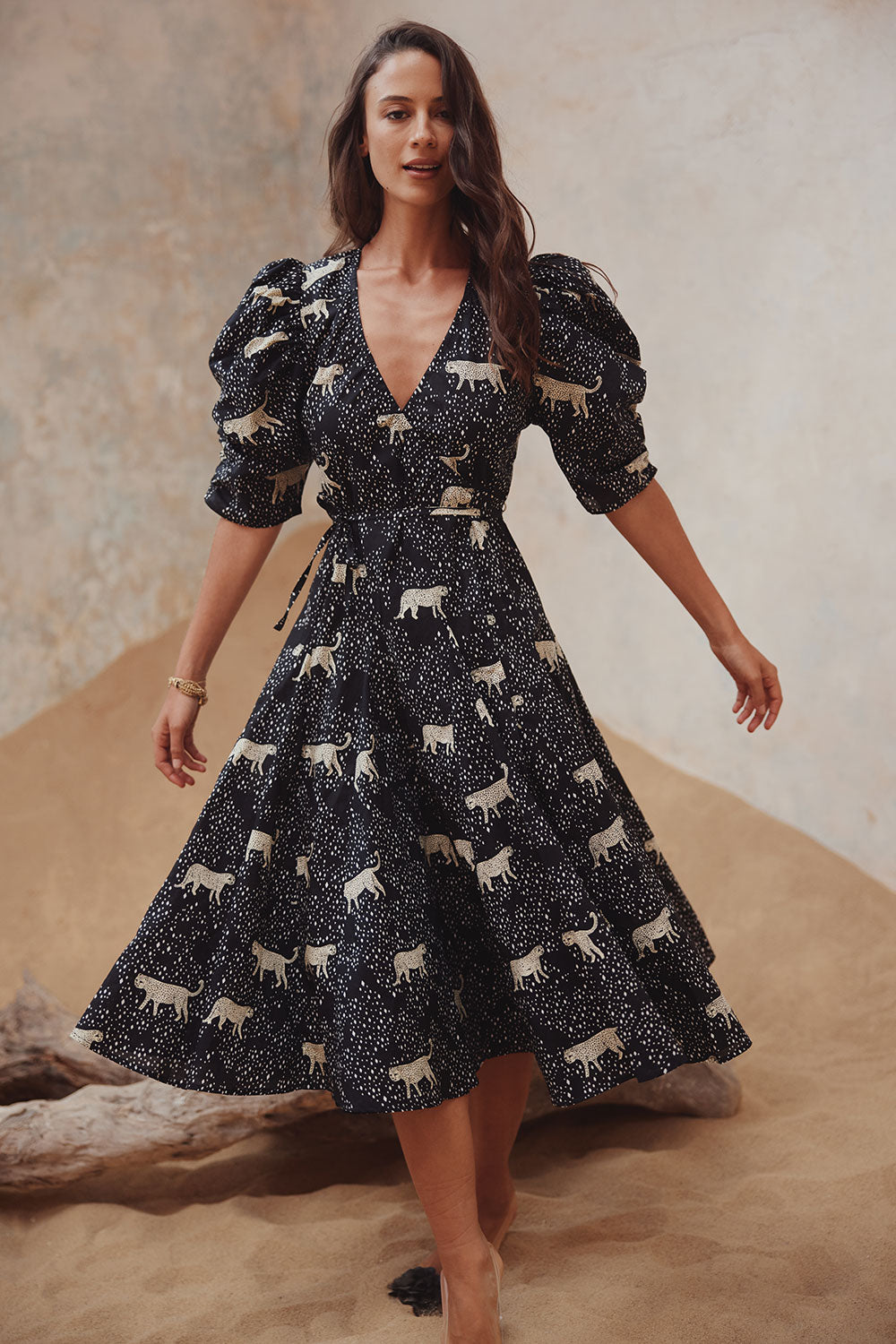 CAMILLA WRAP MIDI DRESS LEOPARD DIAMOND NOIR