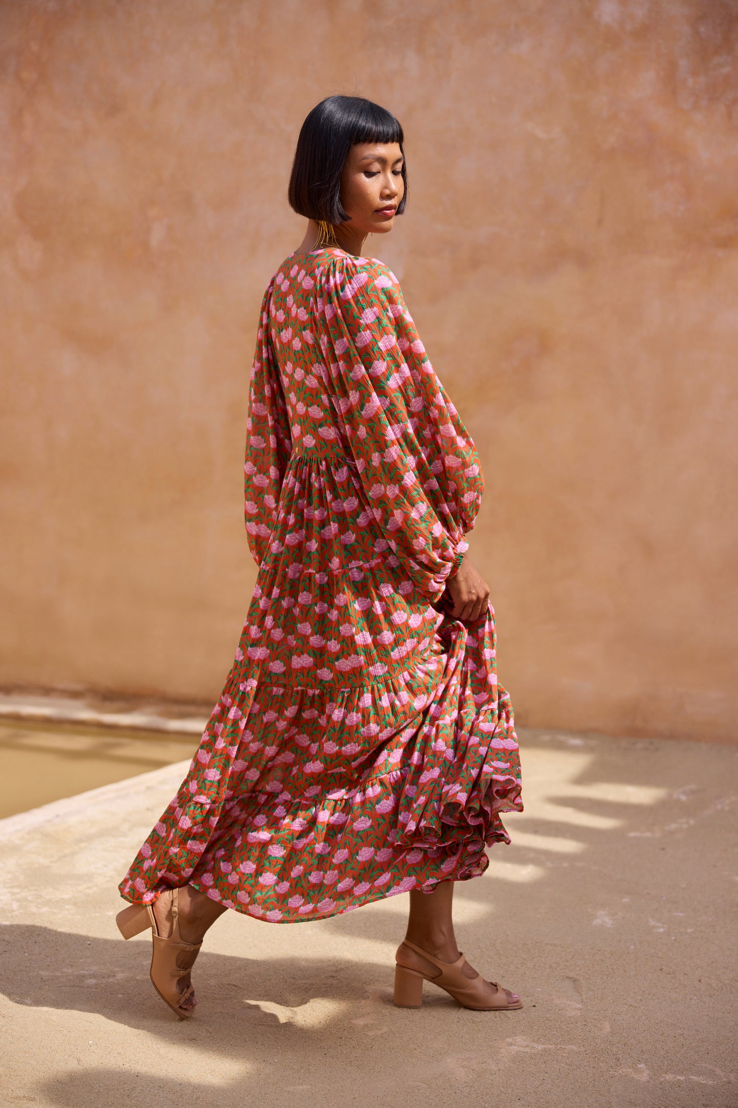PANDORA MIDI DRESS POPPY FLOWER MULTI