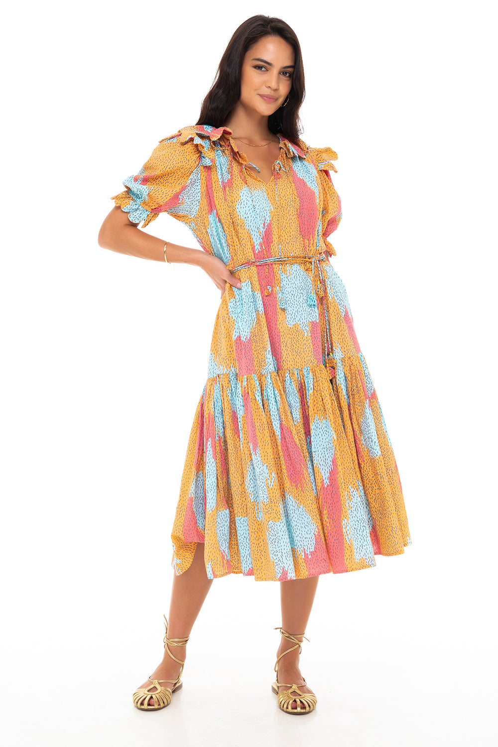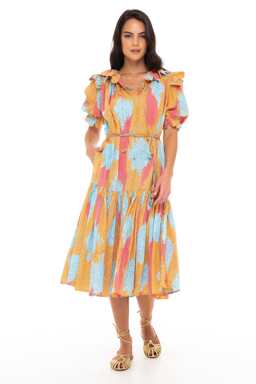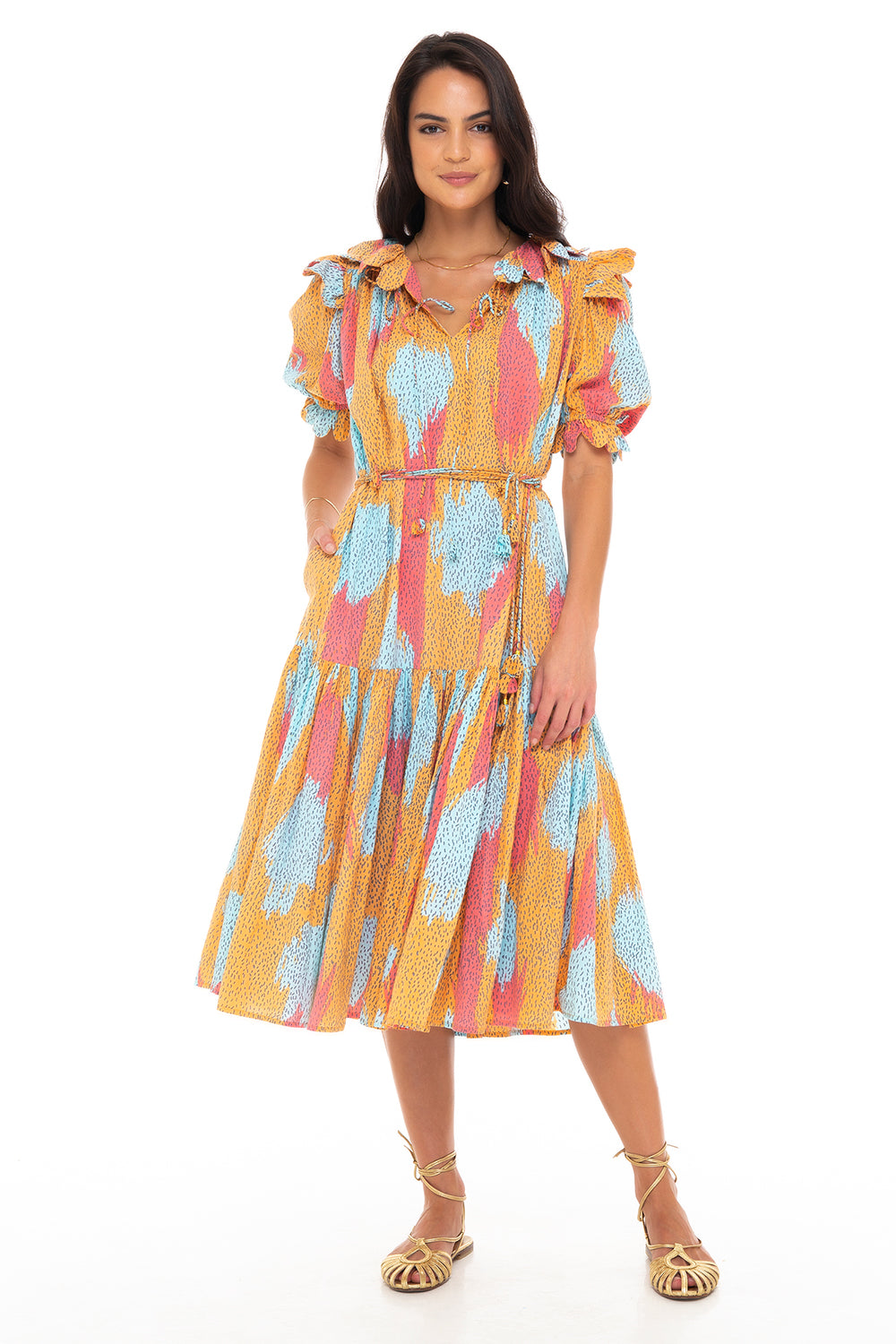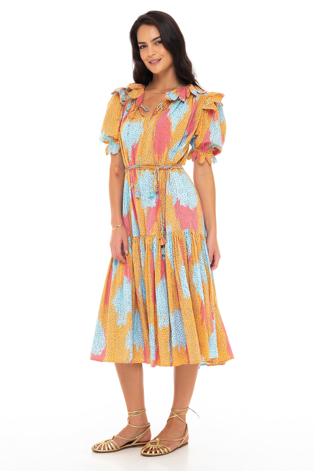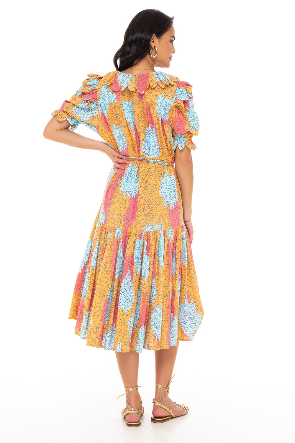 SAFFRON SCALLOP MIDI DRESS 2 SEASONS TANGERINE