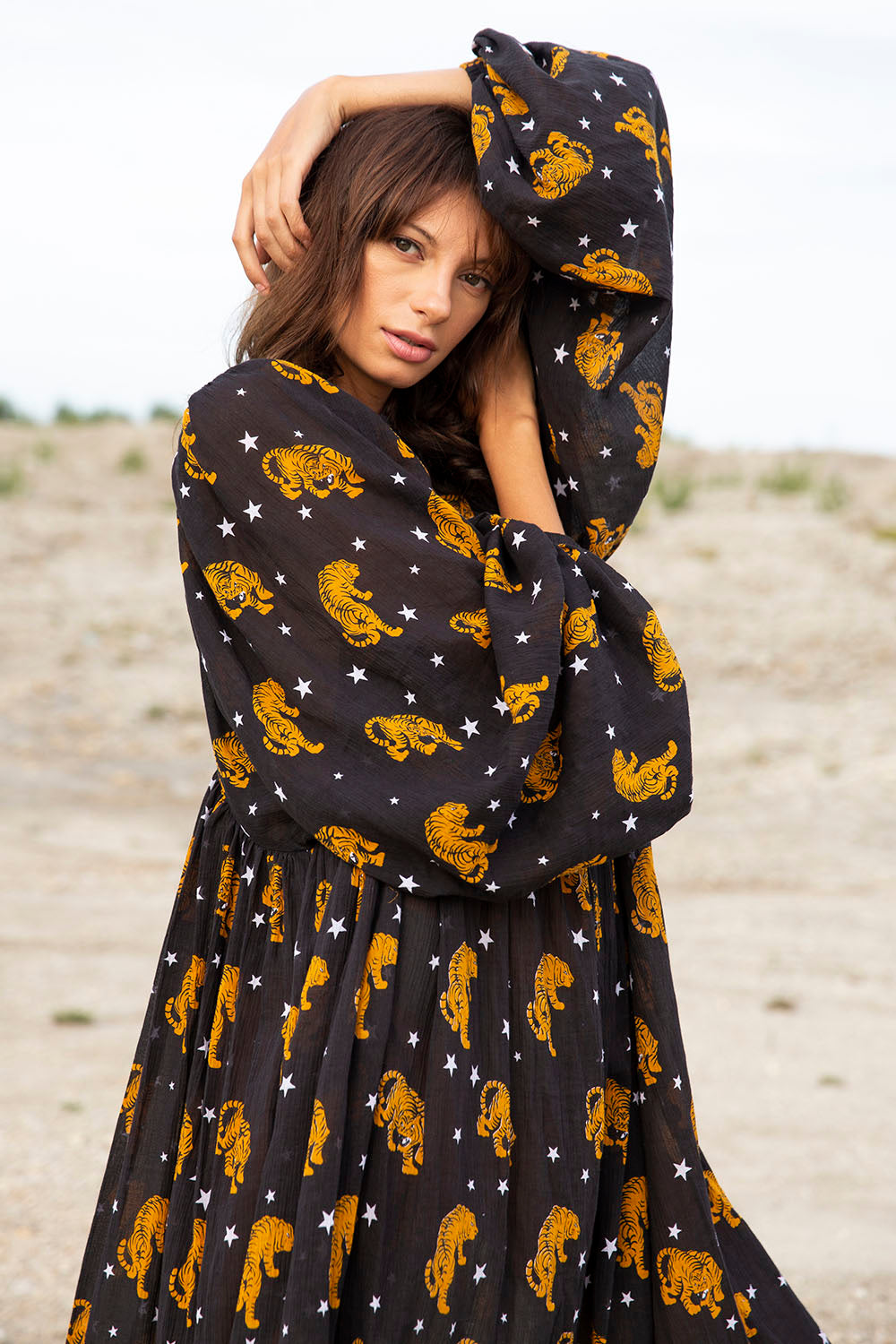 SARA SMITH DRESS TIGER STAR CHARCOAL