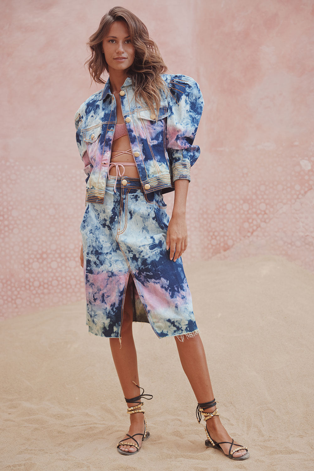 TIANA SKIRT ICE TIE DYE BLUE DENIM