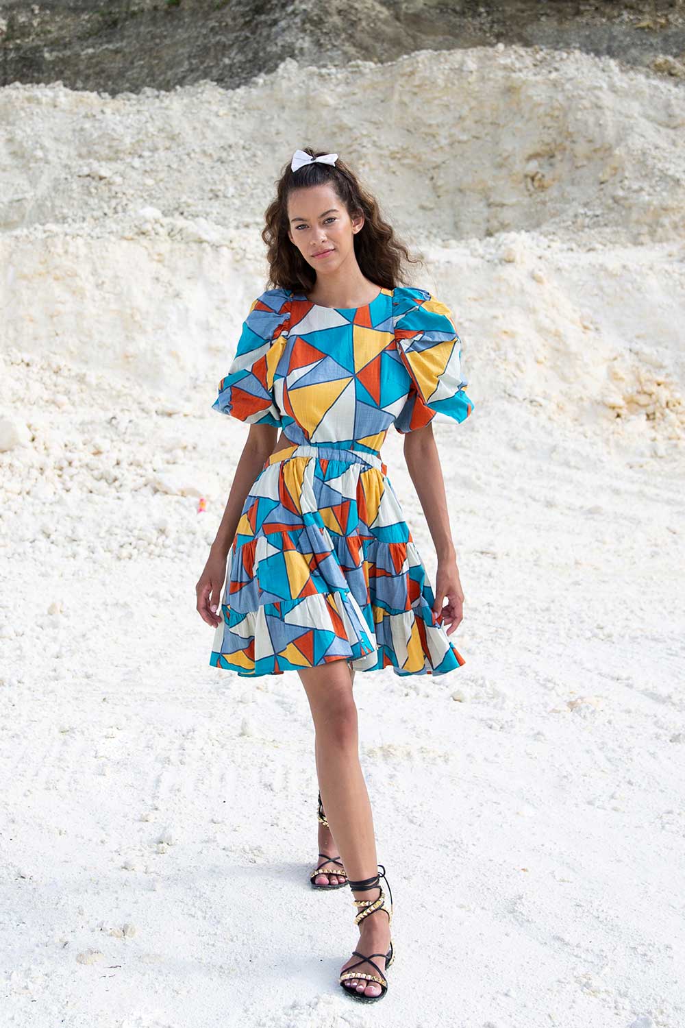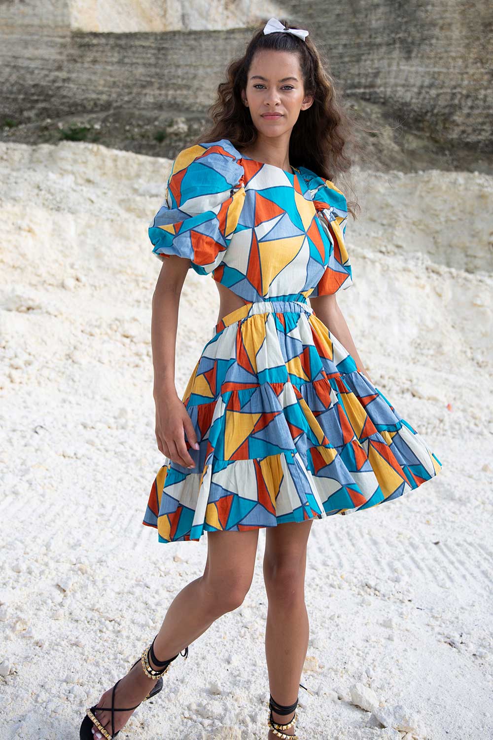 YUMI BACKLESS MINI DRESS TRIANGULAR MULTI