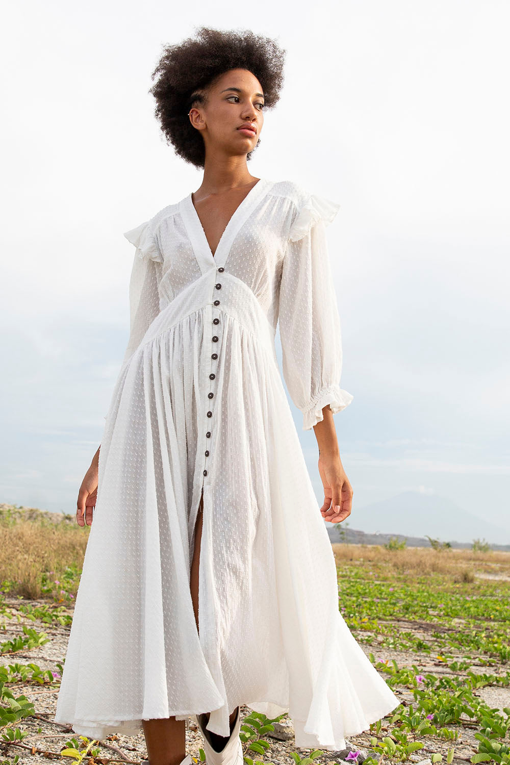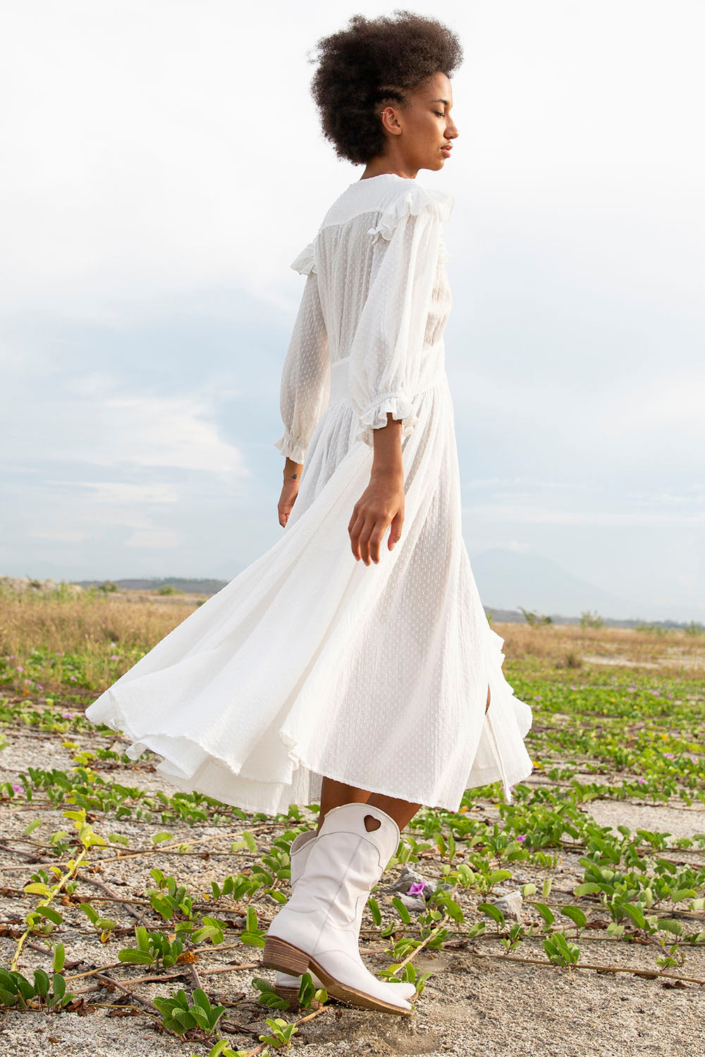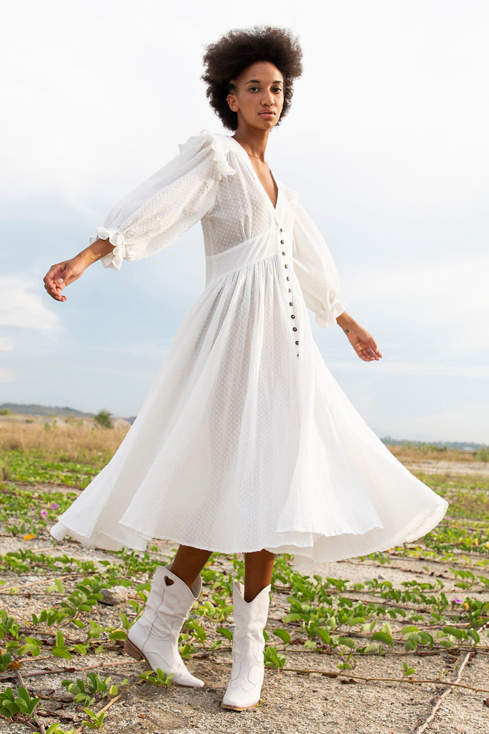 ZANTHE DOT MILKY WHITE MIDI DRESS
