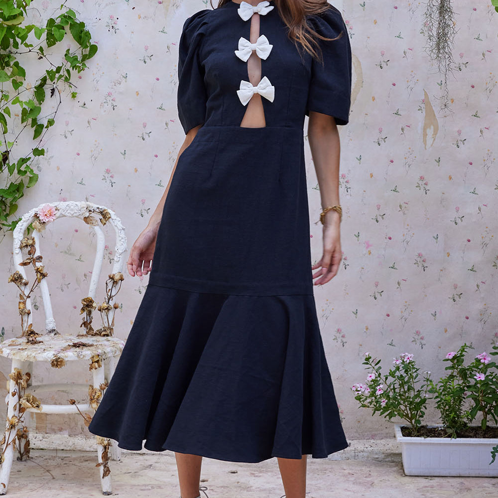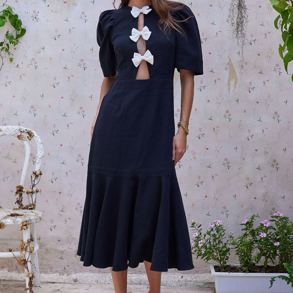 GIANNA BOW MIDI DRESS NOIR