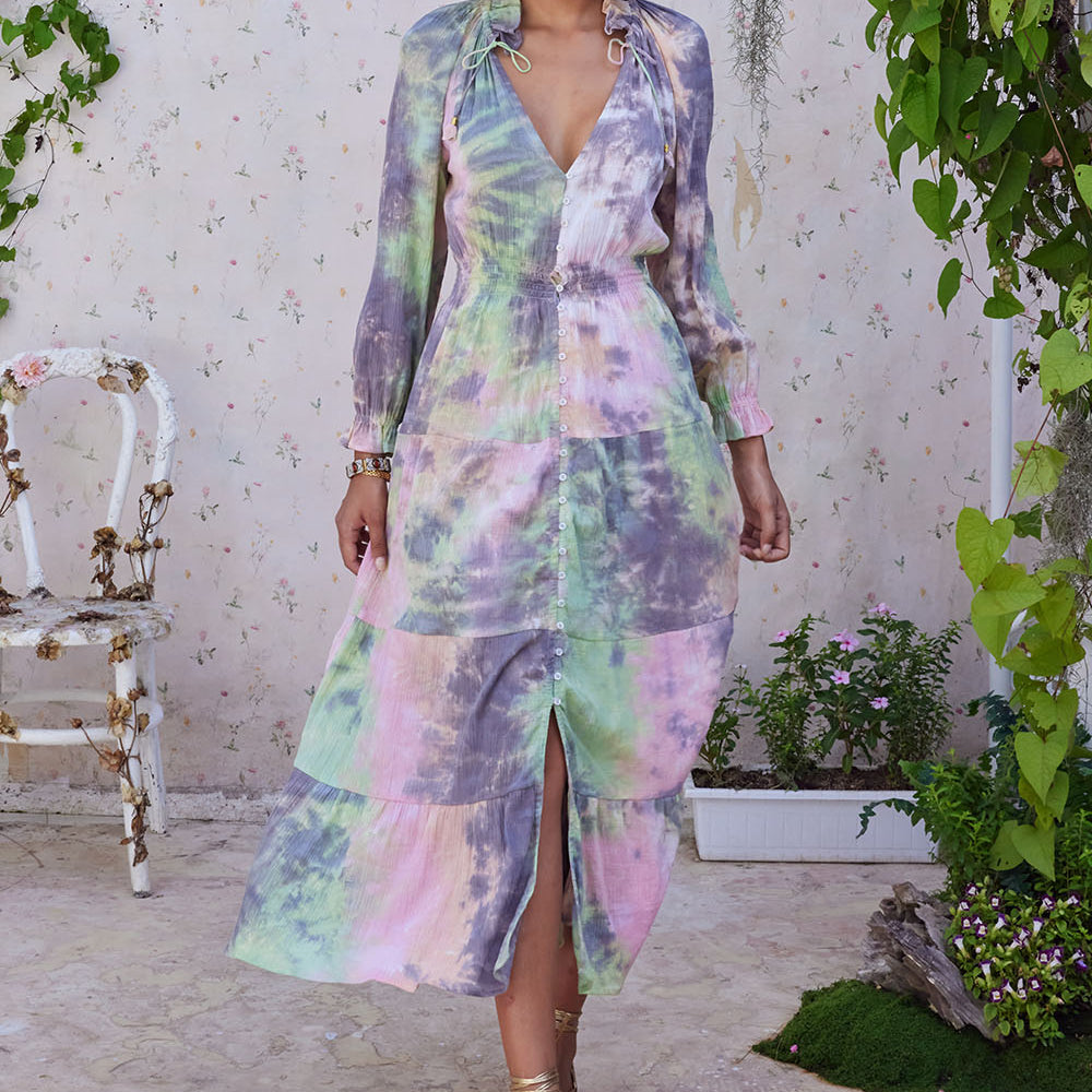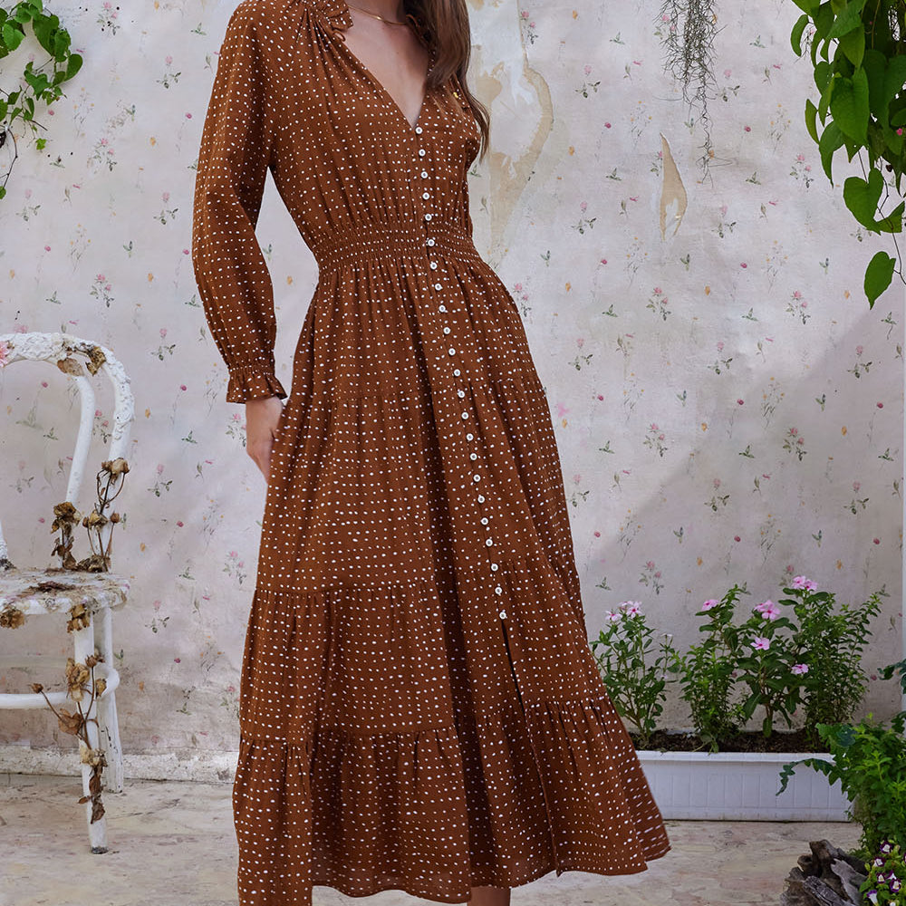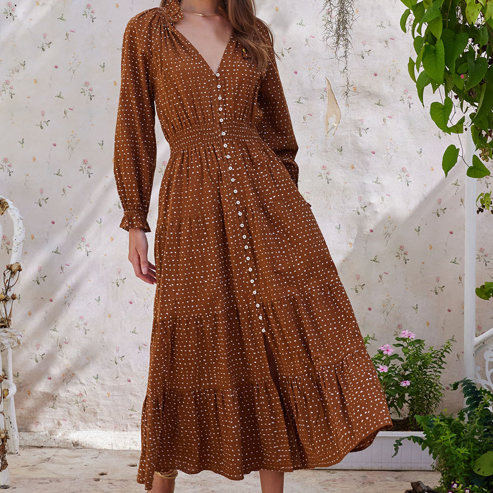 IMAN MAXI DRESS RANDOM DOT BROWN ALEZAN