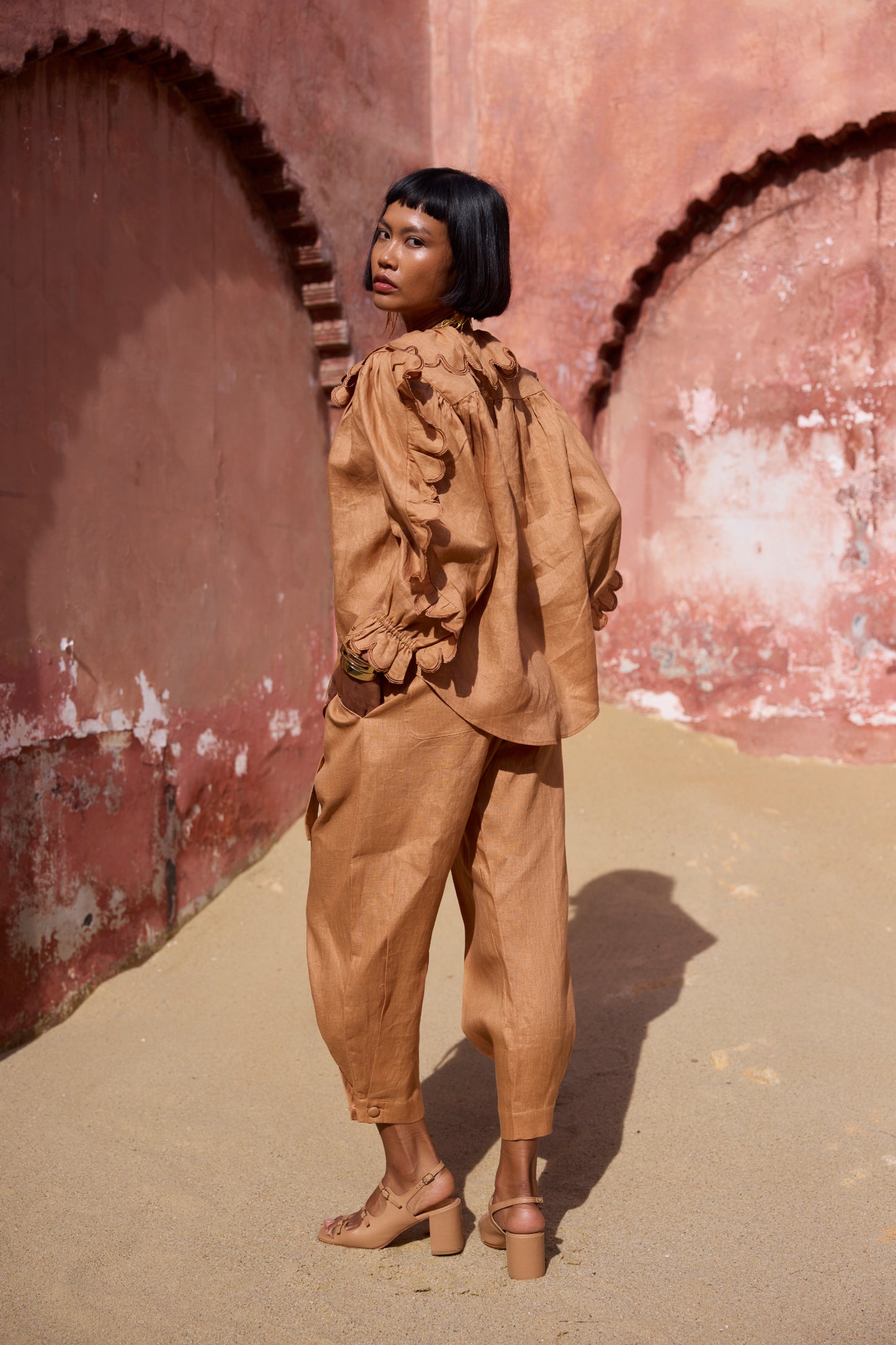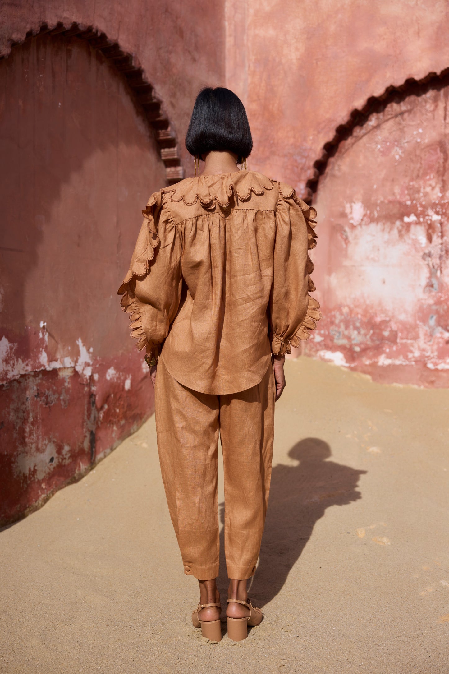 EDWARD SCALLOP EMBROIDERY BLOUSE TAN