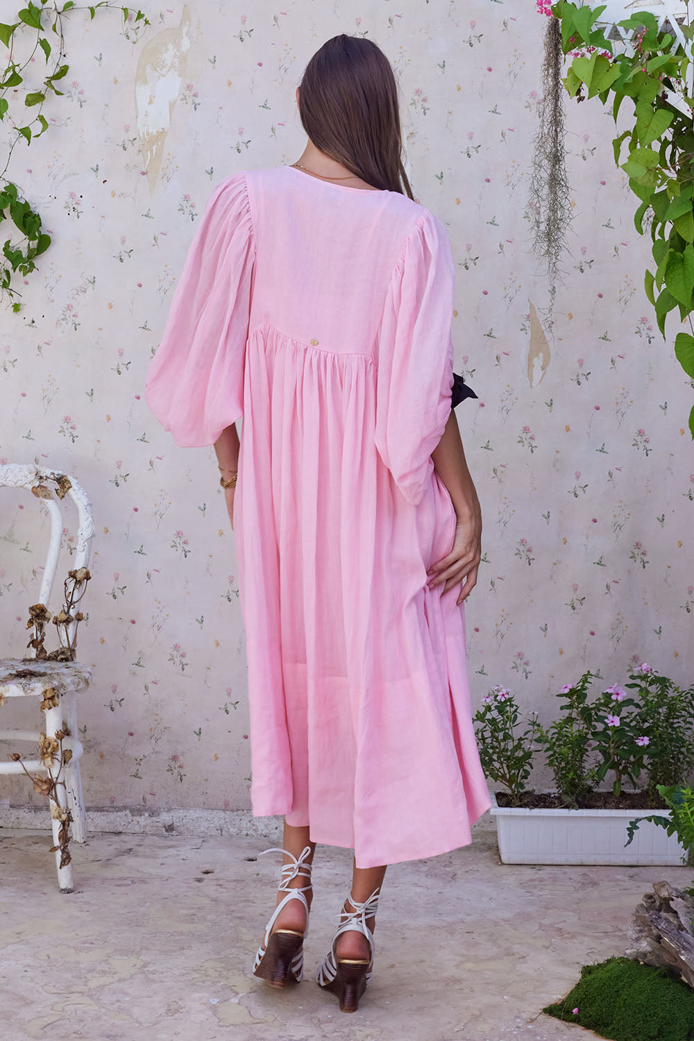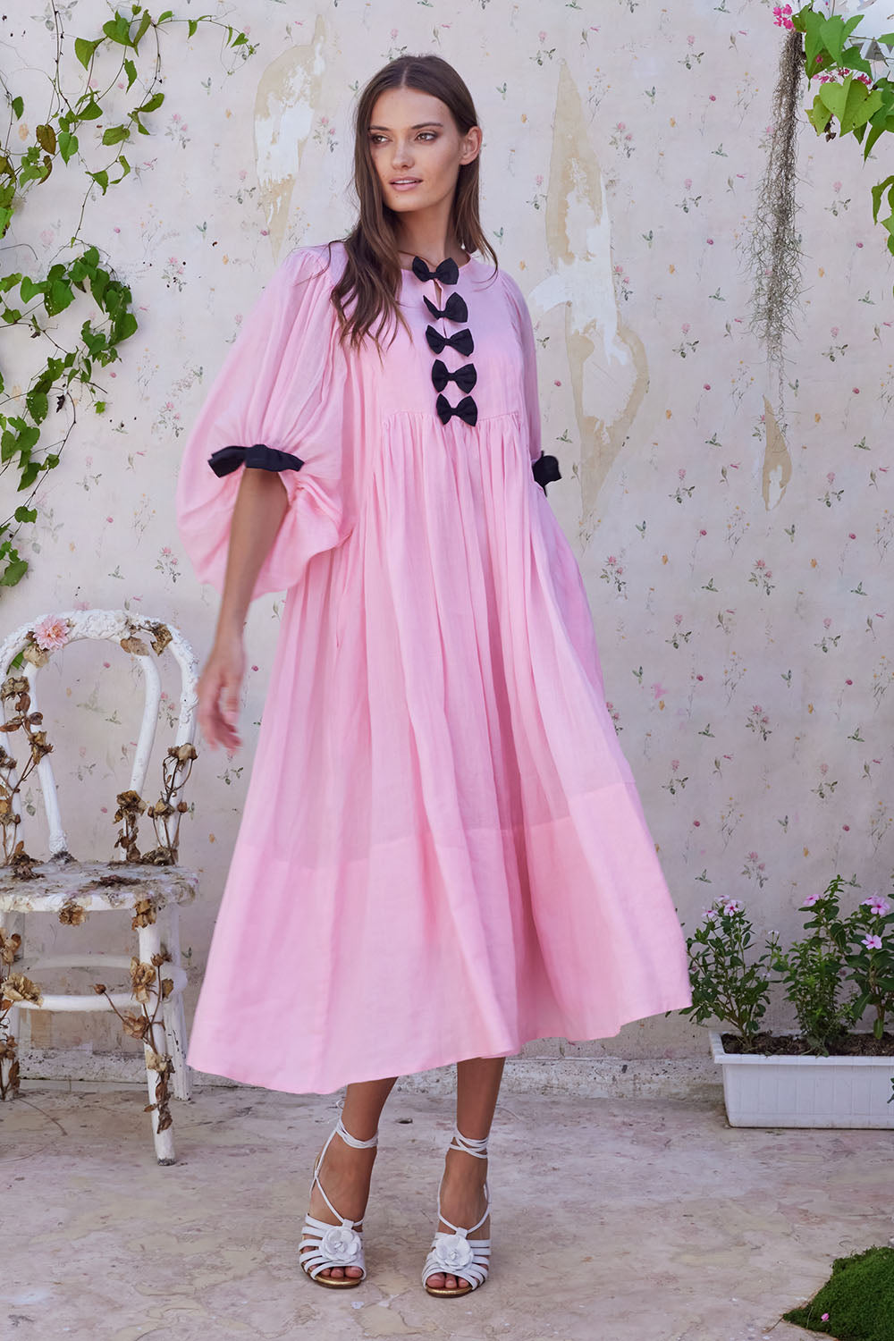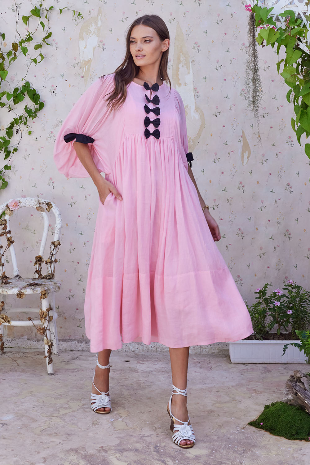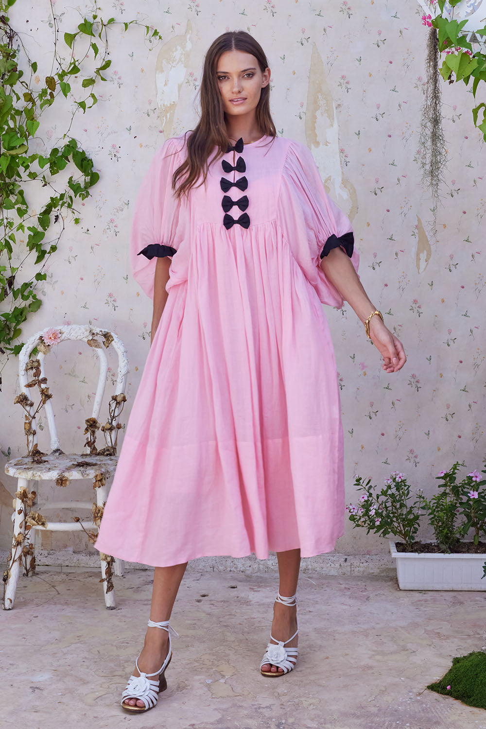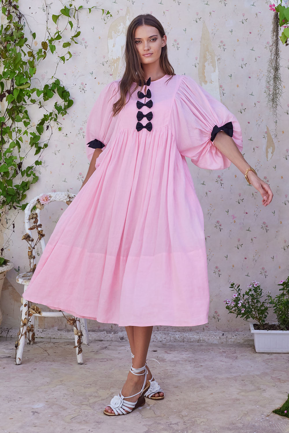 MIUCCIA BOW MIDI DRESS BLACK/ ROSE PINK