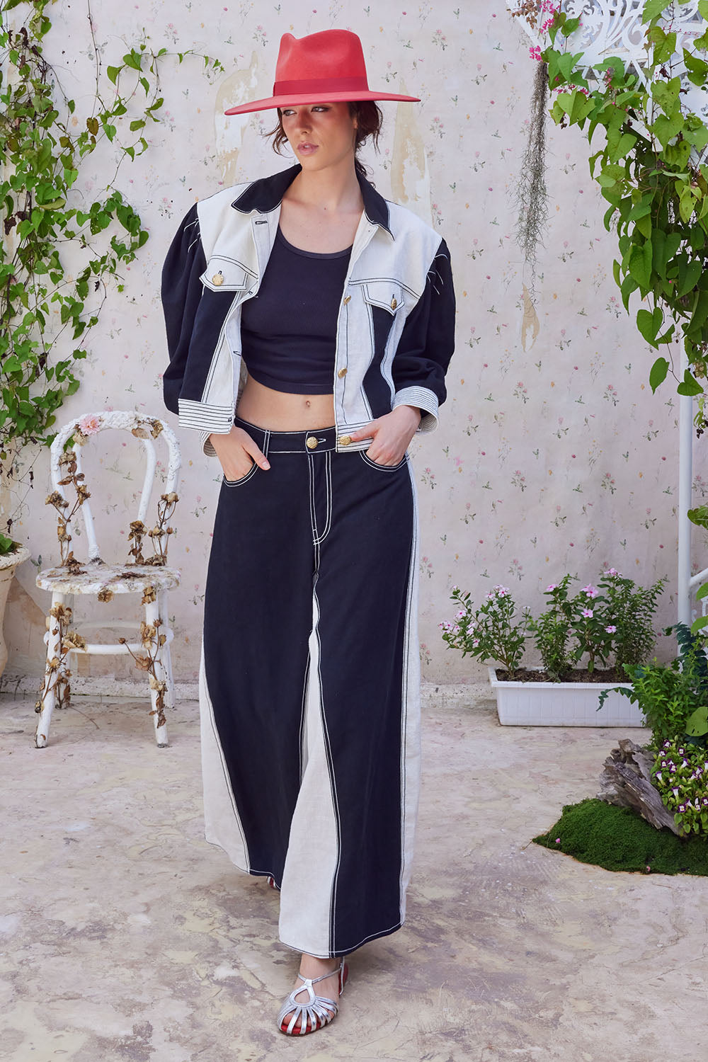 HYUNJI PANTS BLACK/ OFF WHITE