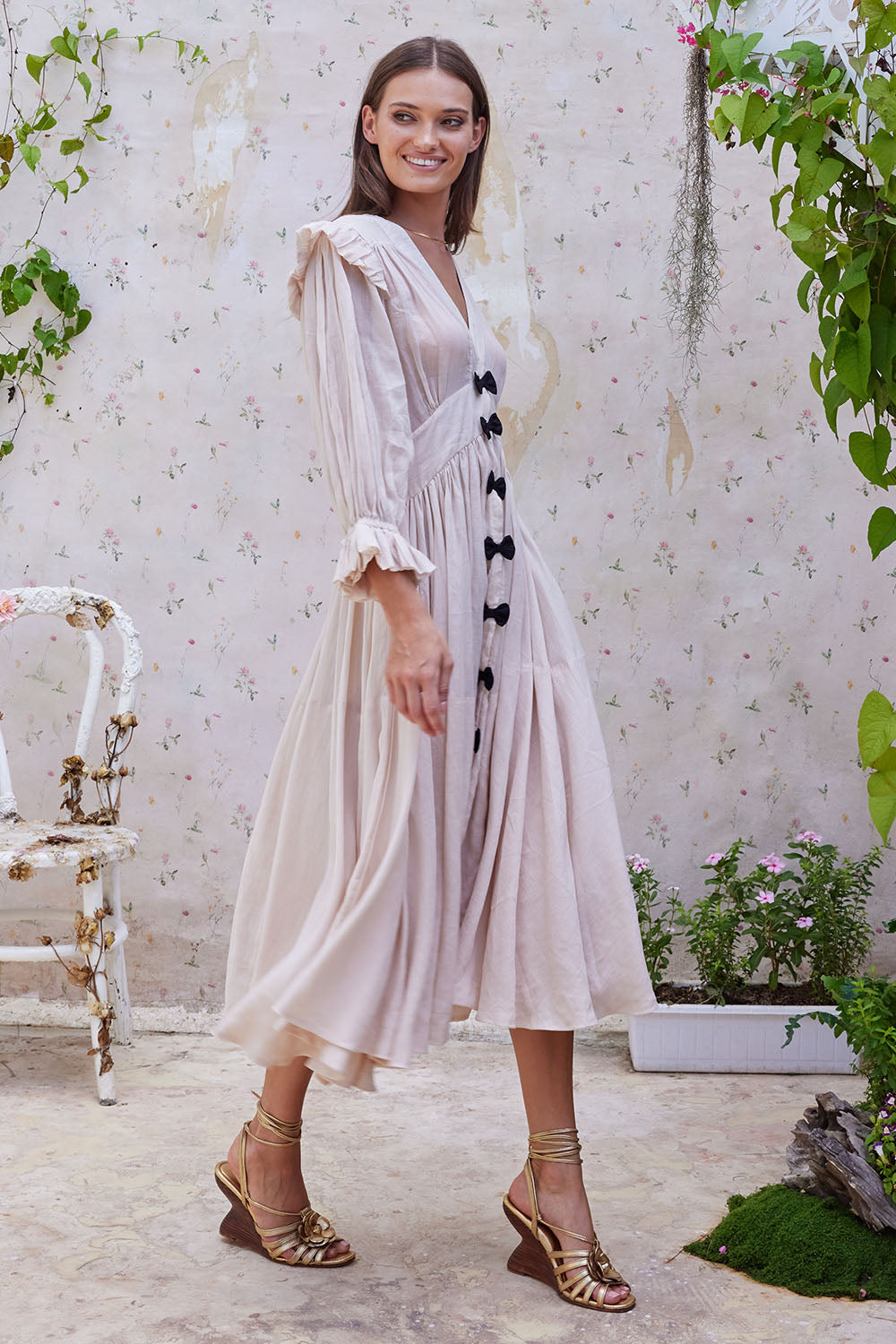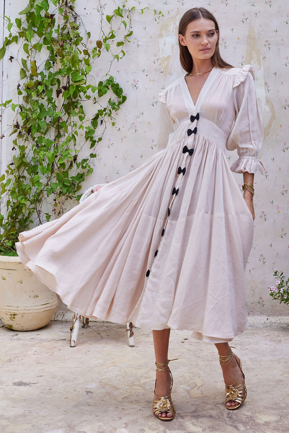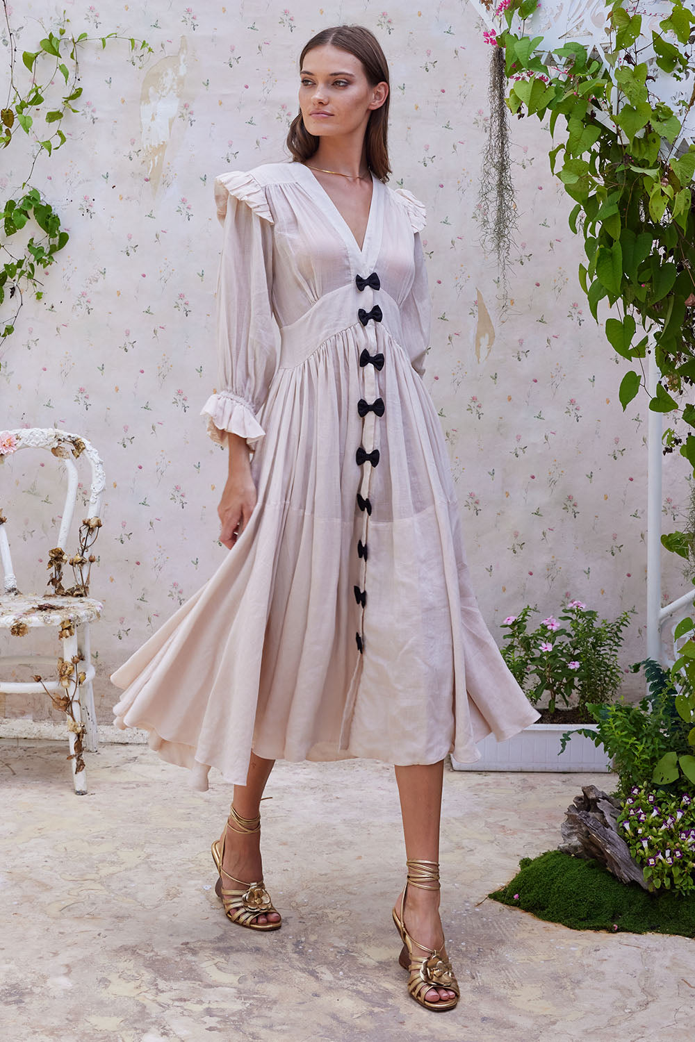 JACOBELLA BOW MIDI DRESS BLACK/ NUDE