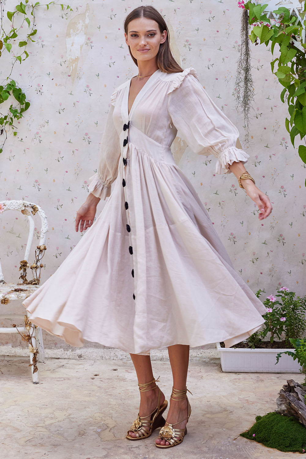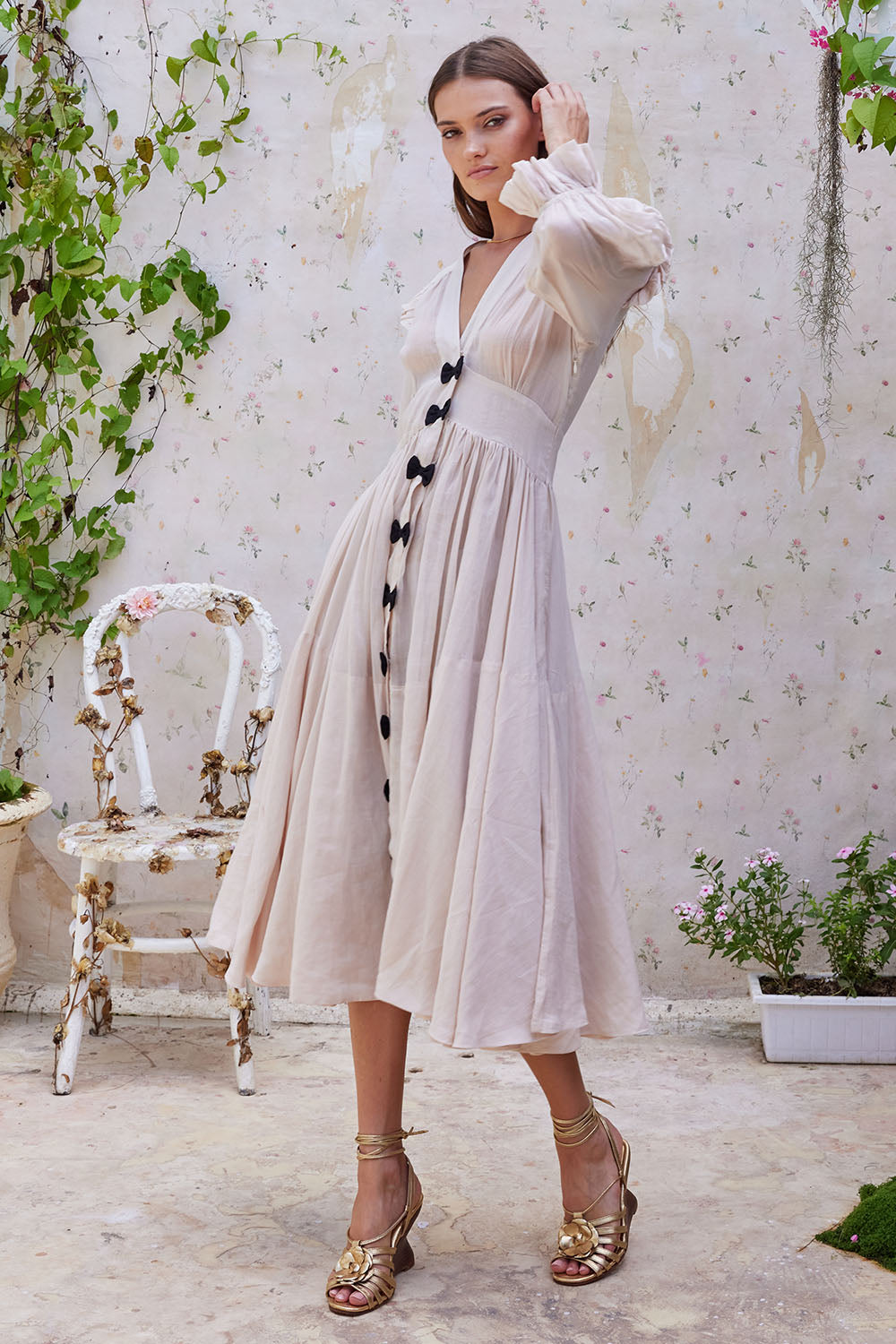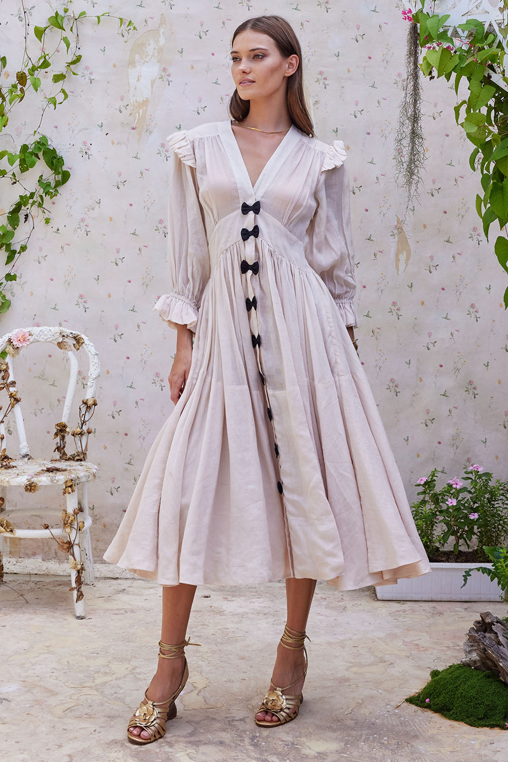 JACOBELLA BOW MIDI DRESS BLACK/ NUDE