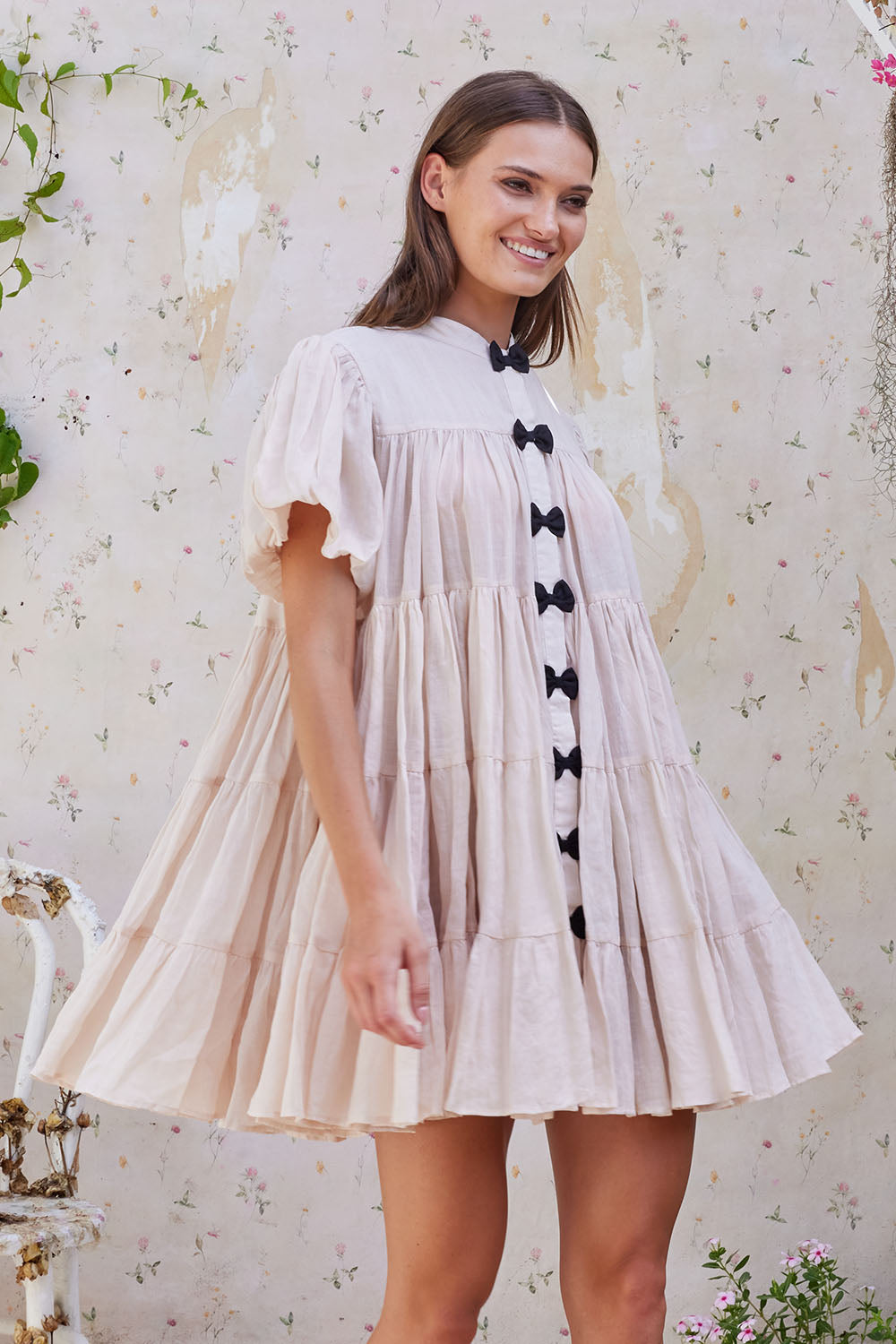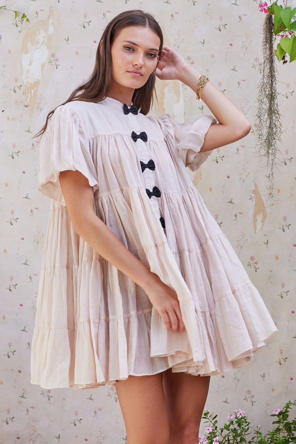 JAQUETTA BOW MINI DRESS BLACK/ NUDE