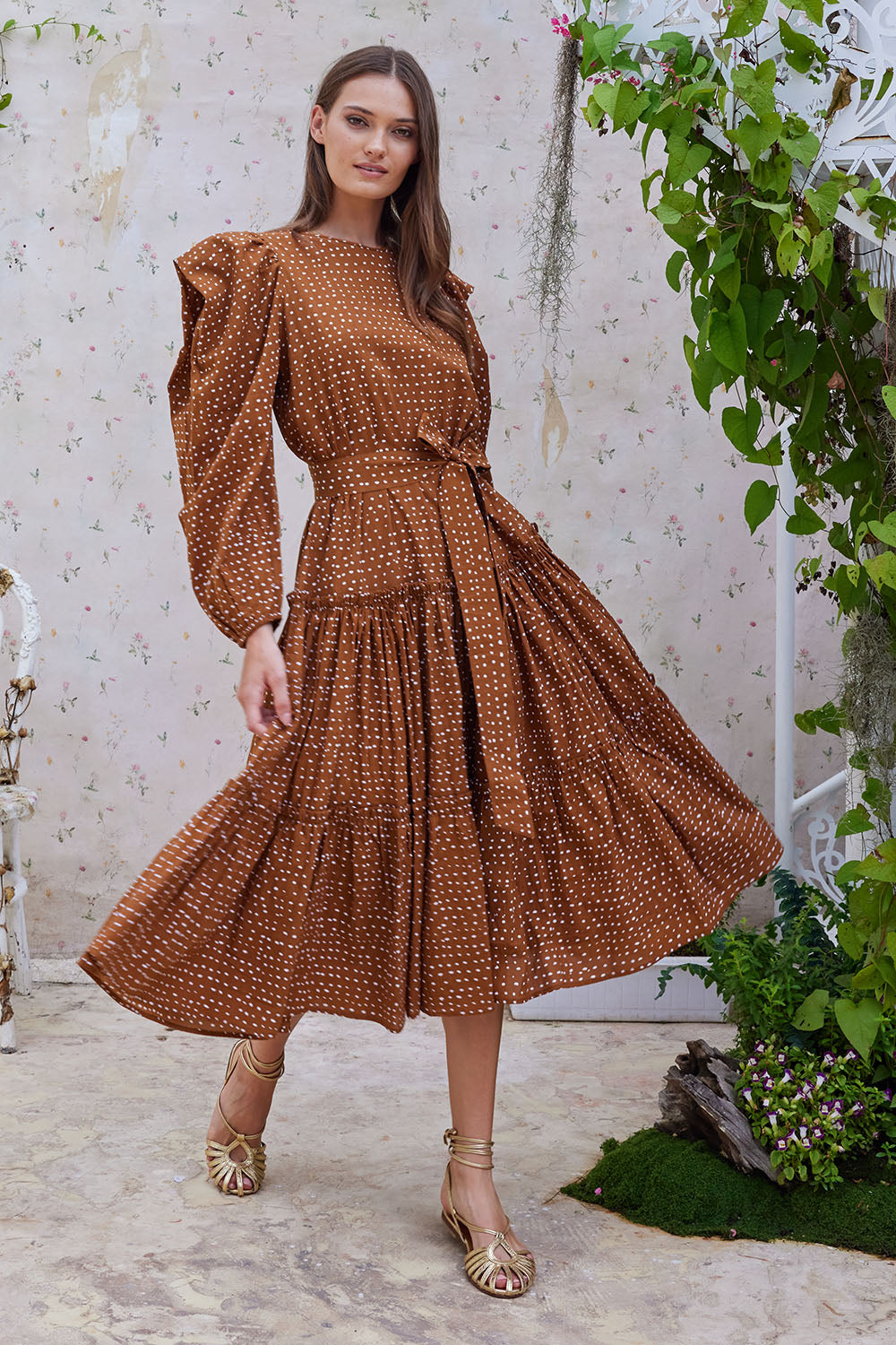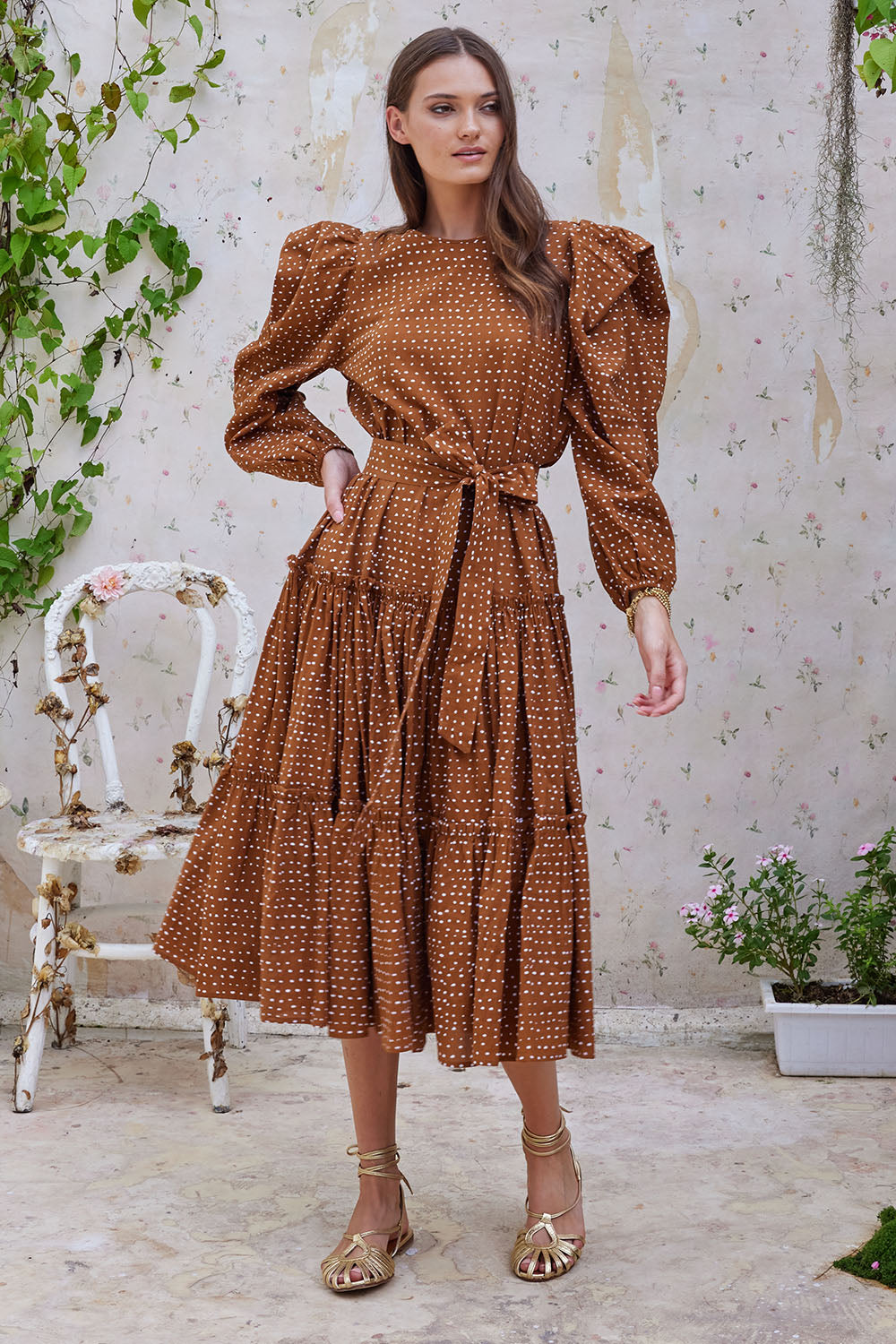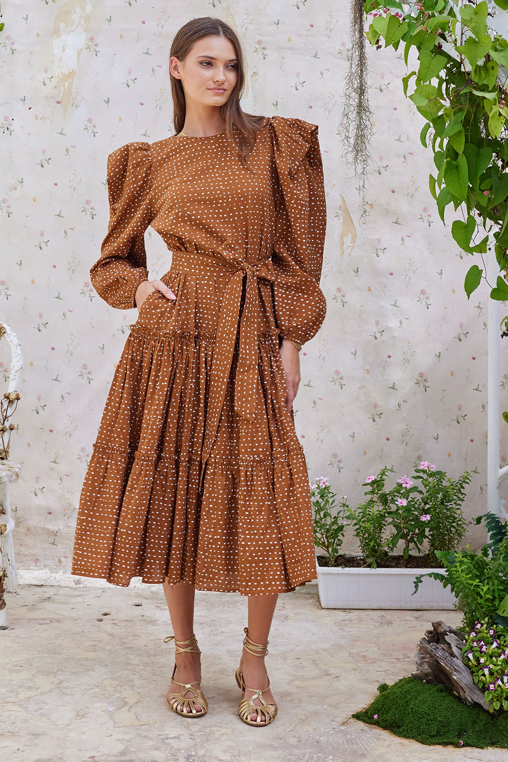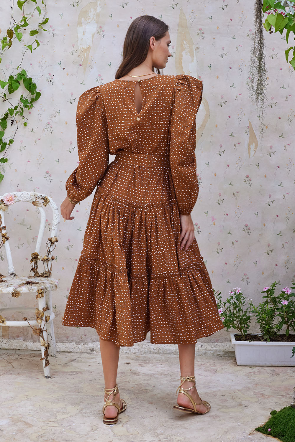 LEXXI MIDI DRESS RANDOM DOT BROWN ALEZAN
