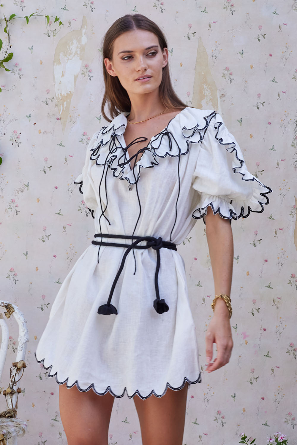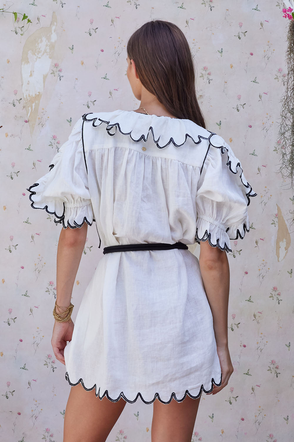 MAJA SCALLOP MINI DRESS EMBROIDERY OFF WHITE