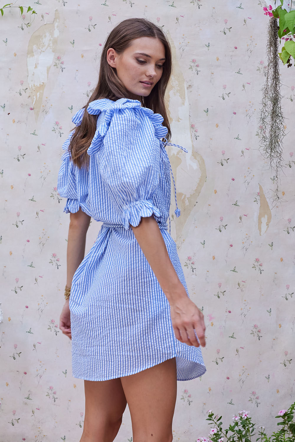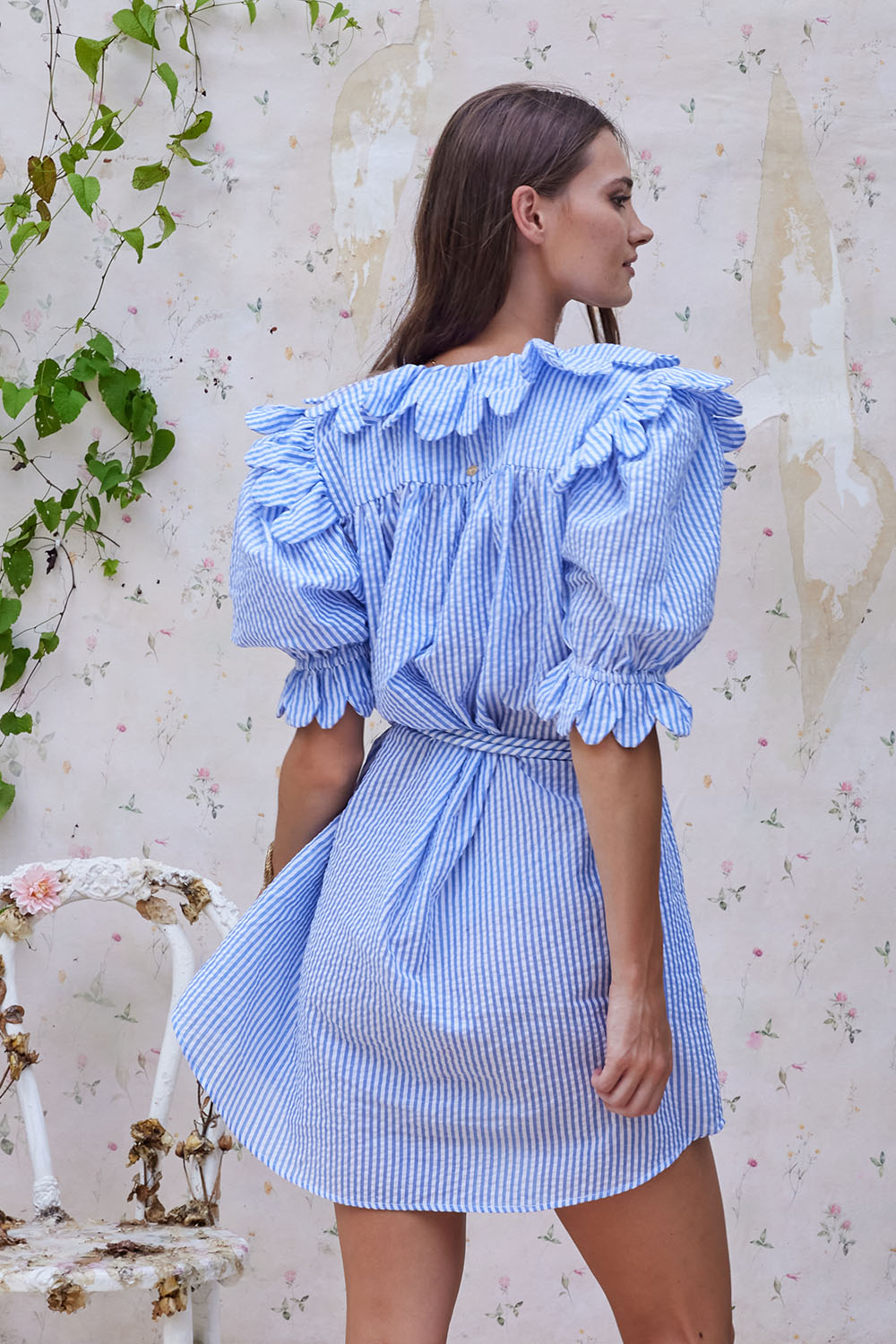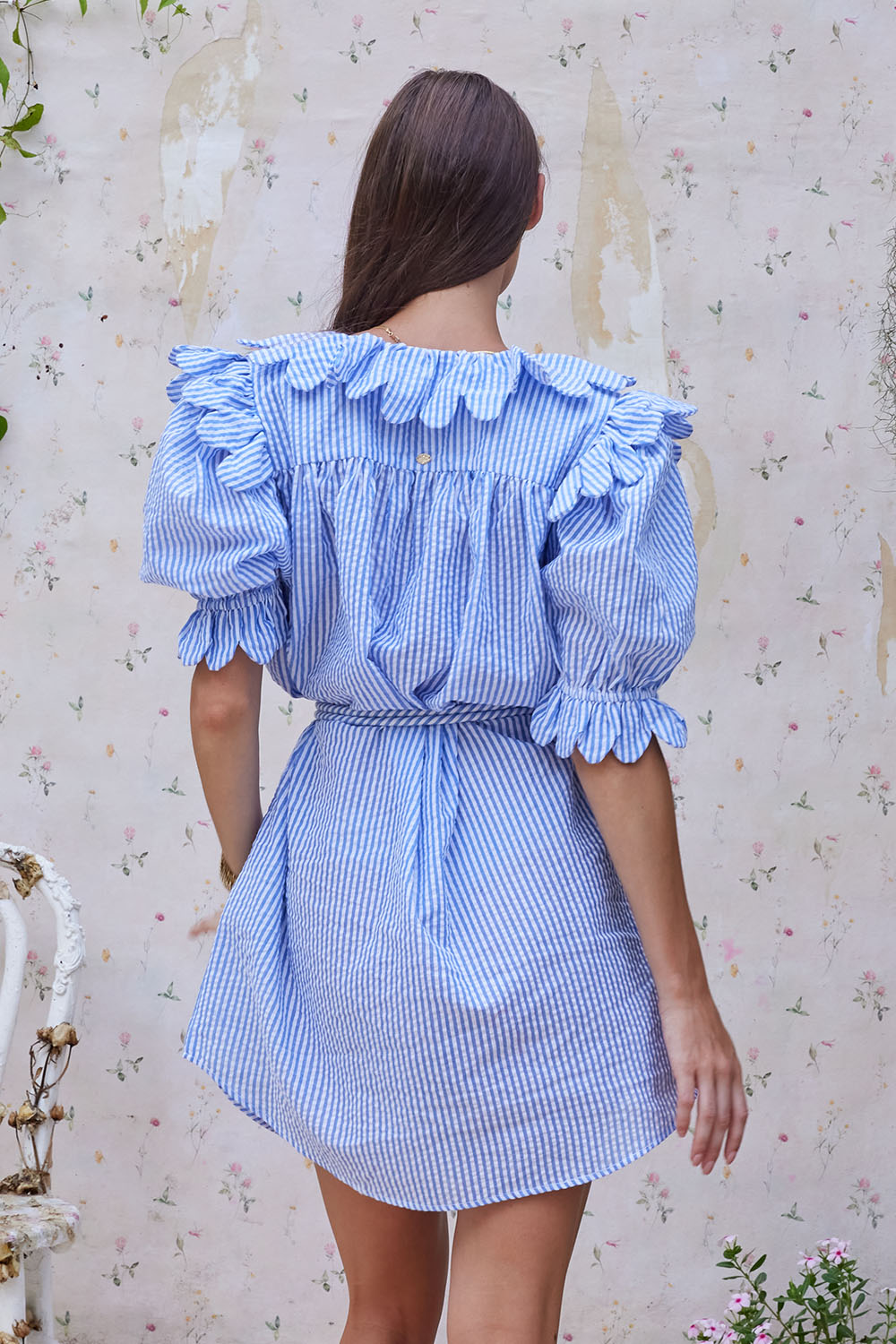 NICO SCALLOP DRESS SEERSUCKER BLUE SKY
