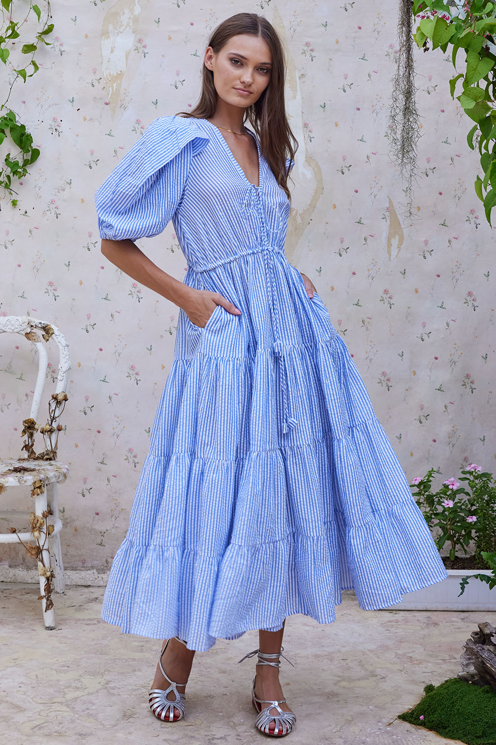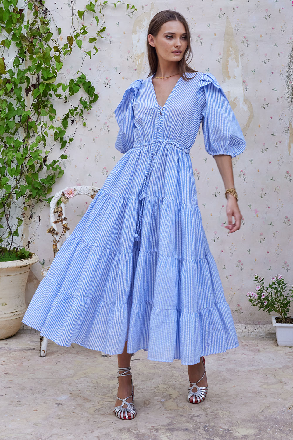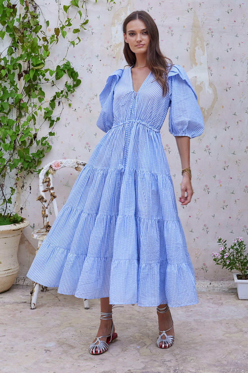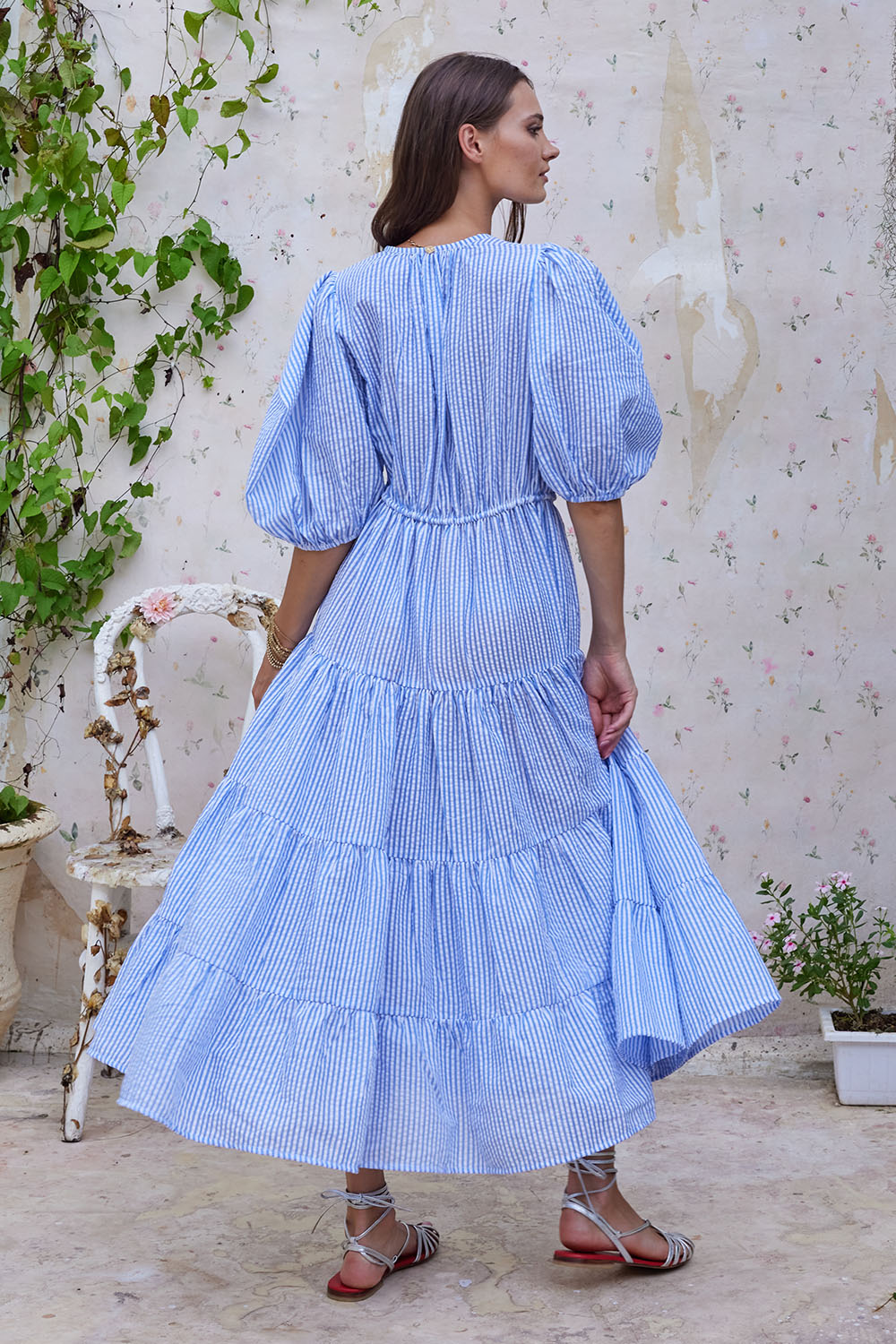 OLIVIA MAXI DRESS SEERSUCKER BLUE SKY