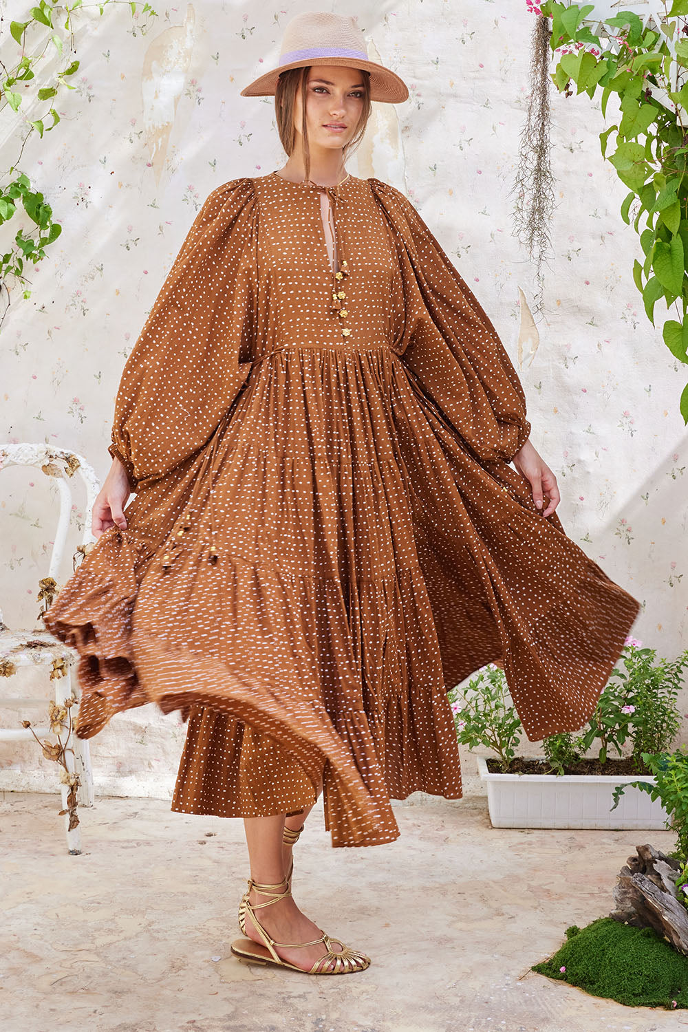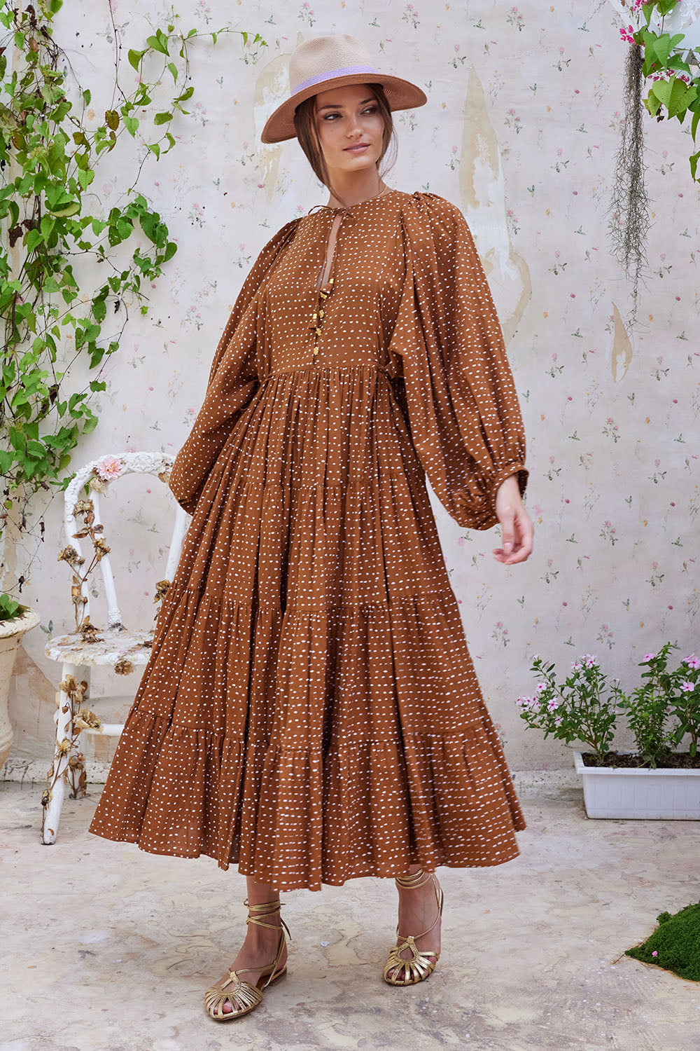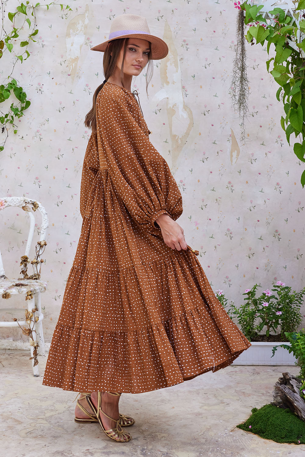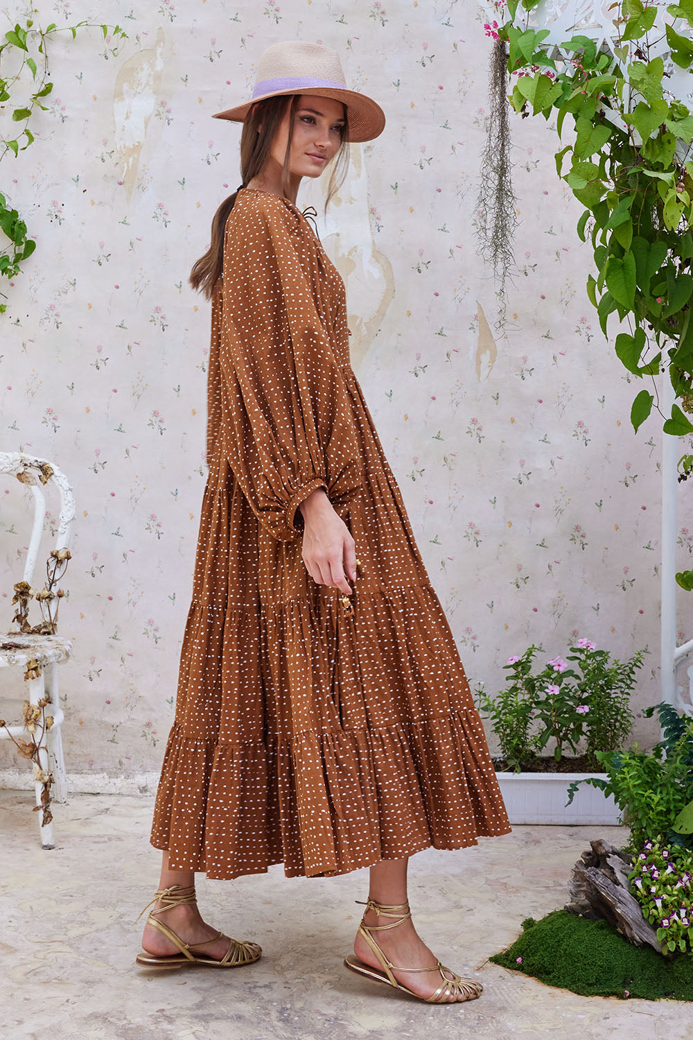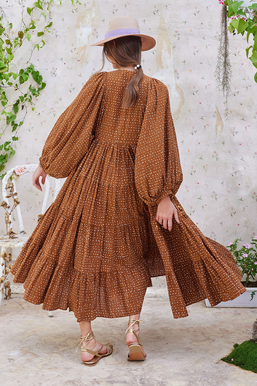 PANDORA MIDI DRESS RANDOM DOT BROWN ALEZAN