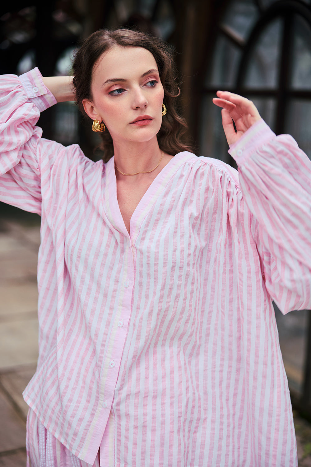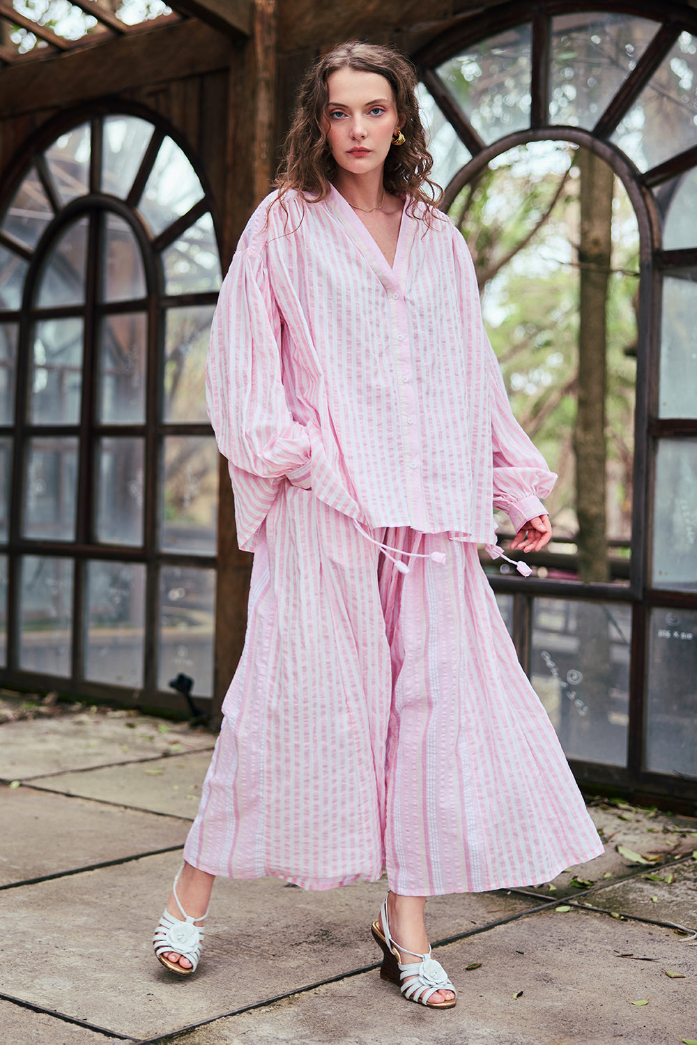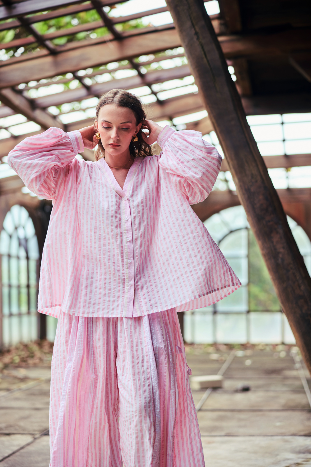 NAO BLOUSE SEERSUCKER BIG STRIPES BABY PINK
