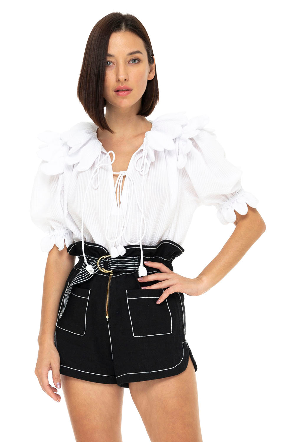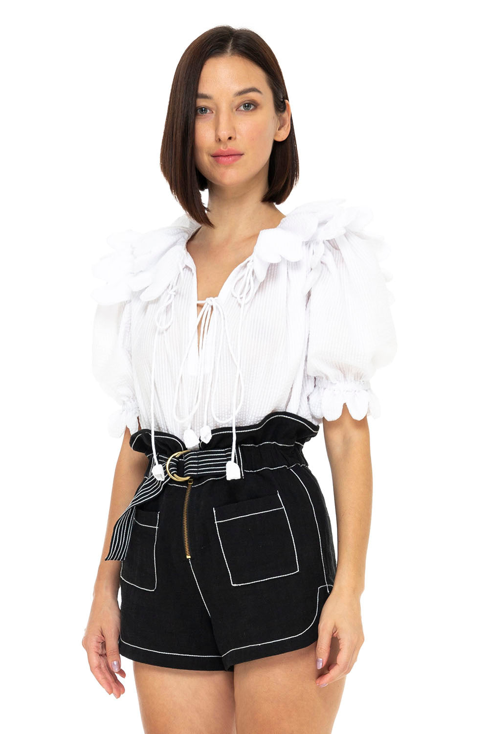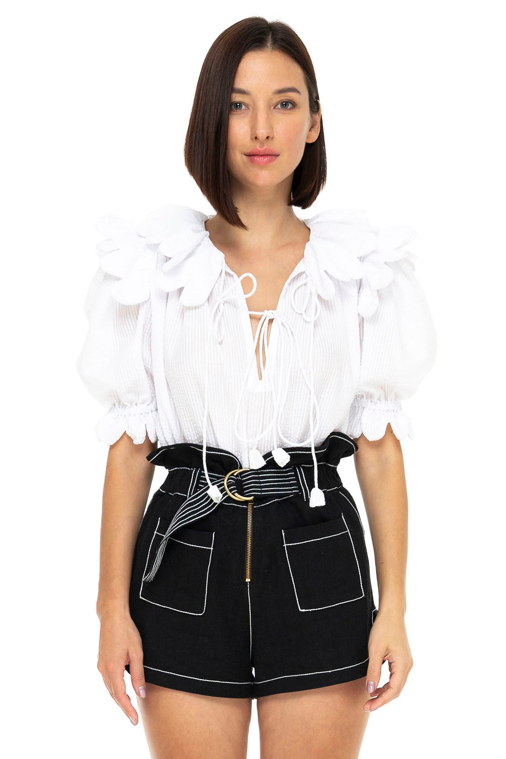 NICO SCALLOP TOP SEERSUCKER WHITE